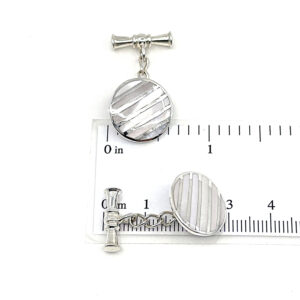 Round Striped Chain Link Cufflinks Set With Mother Of Pearl In 925 English Hallmarked Sterling Silver