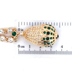 A Victorian style egg shaped necklace crafted in gold plated metal alloy with enamel detailing and Czech crystals. A distinctive and elegant pendant designed for gifting or everyday wear.