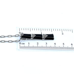 A bamboo style pendant necklace featuring black enamel and marcasite detailing, designed with elongated proportions and a refined surface finish for a distinctive and composed appearance.