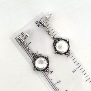 Victorian style drop earrings set with cultured pearl and marcasite, combining slender design with precise craftsmanship and a balanced, elegant finish.