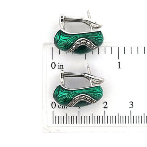 Elizabethan style stud earrings set with green enamel and marcasite, combining decorative floral design with precise craftsmanship and a balanced, refined finish.