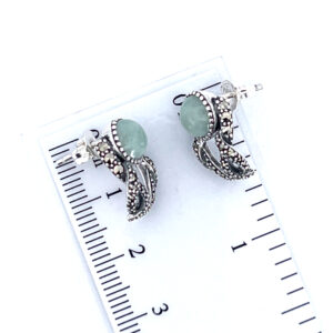 Victorian style stud earrings set with jade and marcasite, combining traditional design with precise craftsmanship and a balanced, refined finish.