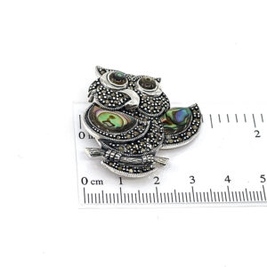 Owl Brooch With Abalone Shell And Marcasite, finished in 925 English Hallmarked Sterling Silver