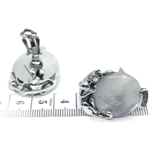 Panther earrings set with mother of pearl, marcasite, and emerald detail, combining sculptural design with precise craftsmanship and a layered, distinctive finish.