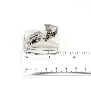 Bull and Bear on Rectangular Pill Box, finished in 925 English Hallmarked Sterling Silver