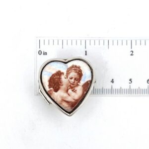 Heart Shaped Cherub Pill Box with Hand Painted Enamel finished in 925 English Hallmarked Sterling Silver