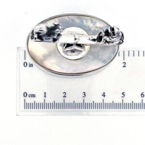 An oval hinged pill box featuring mother of pearl and marcasite detailing, designed with balanced proportions and refined surface character for practical use and decorative appeal.
