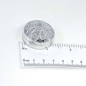 Floral Round Domed Pill Box Victorian Style, finished in 925 English Hallmarked Sterling Silver