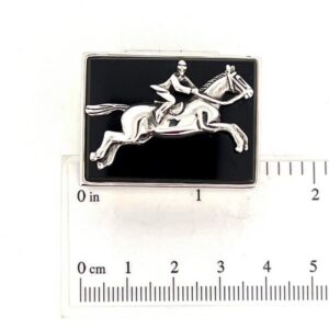 Jockey On Horse Pill Box With Onyx Finished In 925 English Hallmarked Sterling Silver