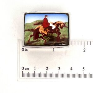 Hunting Scene Pill Box With Hand Painted Enamel Finished In 925 English Hallmarked Sterling Silver