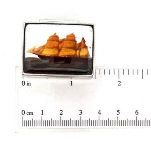 A rectangular hinged pill box featuring a hand painted enamel sailing ship motif, designed with balanced proportions and refined detailing for practical use and decorative appeal.