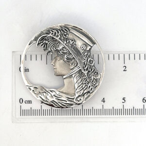 Lady Head Brooch Art Nouveau Style, finished in 925 English Hallmarked Sterling Silver