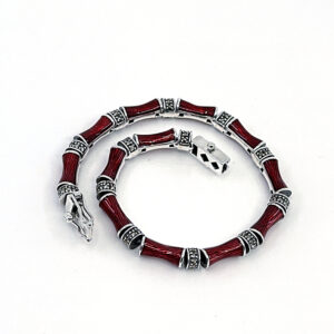 Bamboo Style Bracelet In 925 English Hallmarked Sterling Silver, Set With Red Enamel And Marcasite.