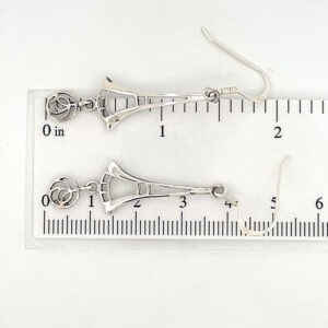 Mackintosh style drop earrings in sterling silver, featuring a slender linear design with a refined and architectural form.