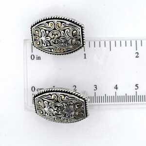 Floral Design Stud Earrings Victorian Style With Gold Plating Finished In 925 English Hallmarked Sterling Silver
