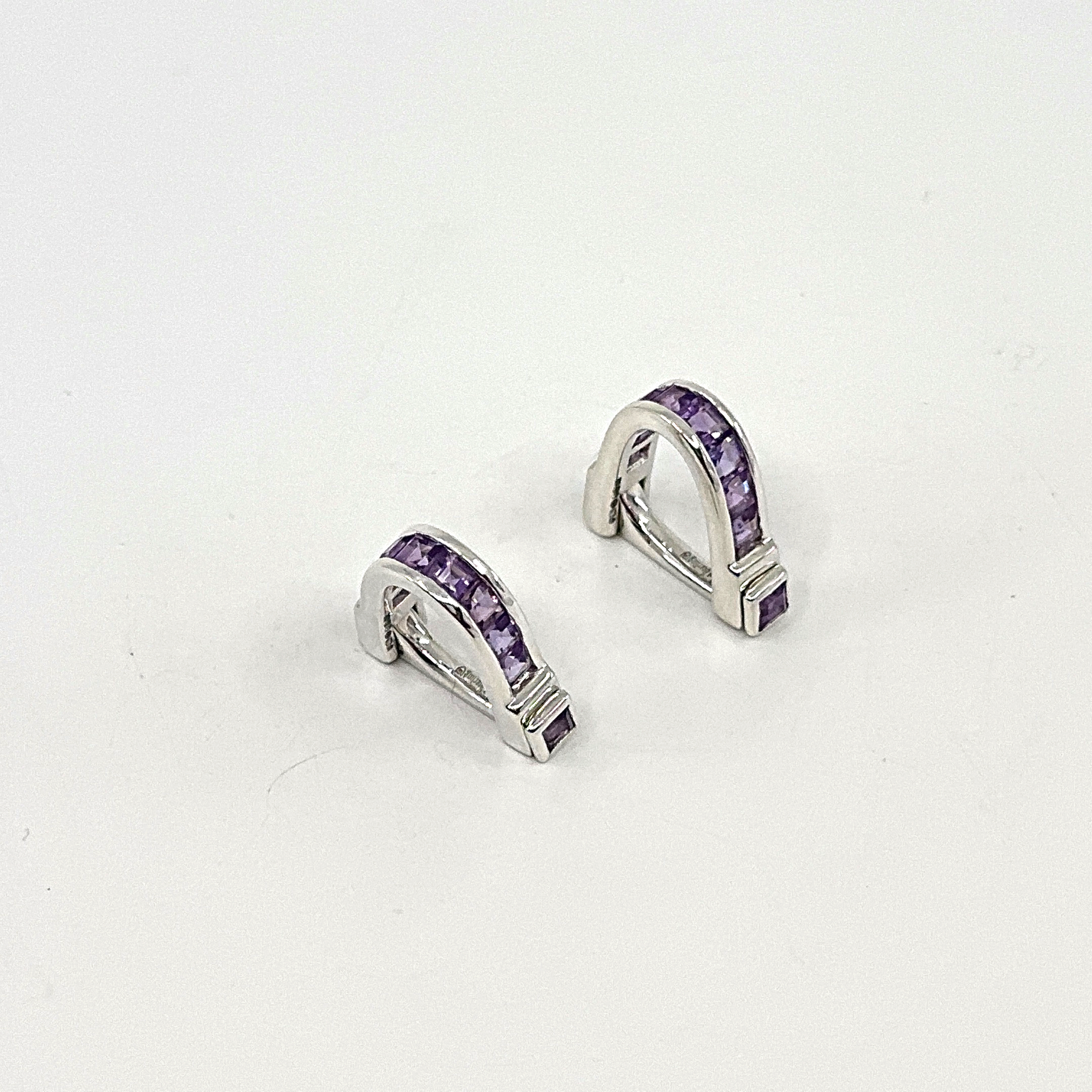 Crafted in England from 925 sterling silver and bearing English hallmarks, these cufflinks are carefully finished and set with multiple amethyst stones to ensure consistency and durability. The clasp fastening provides a secure and practical closure.