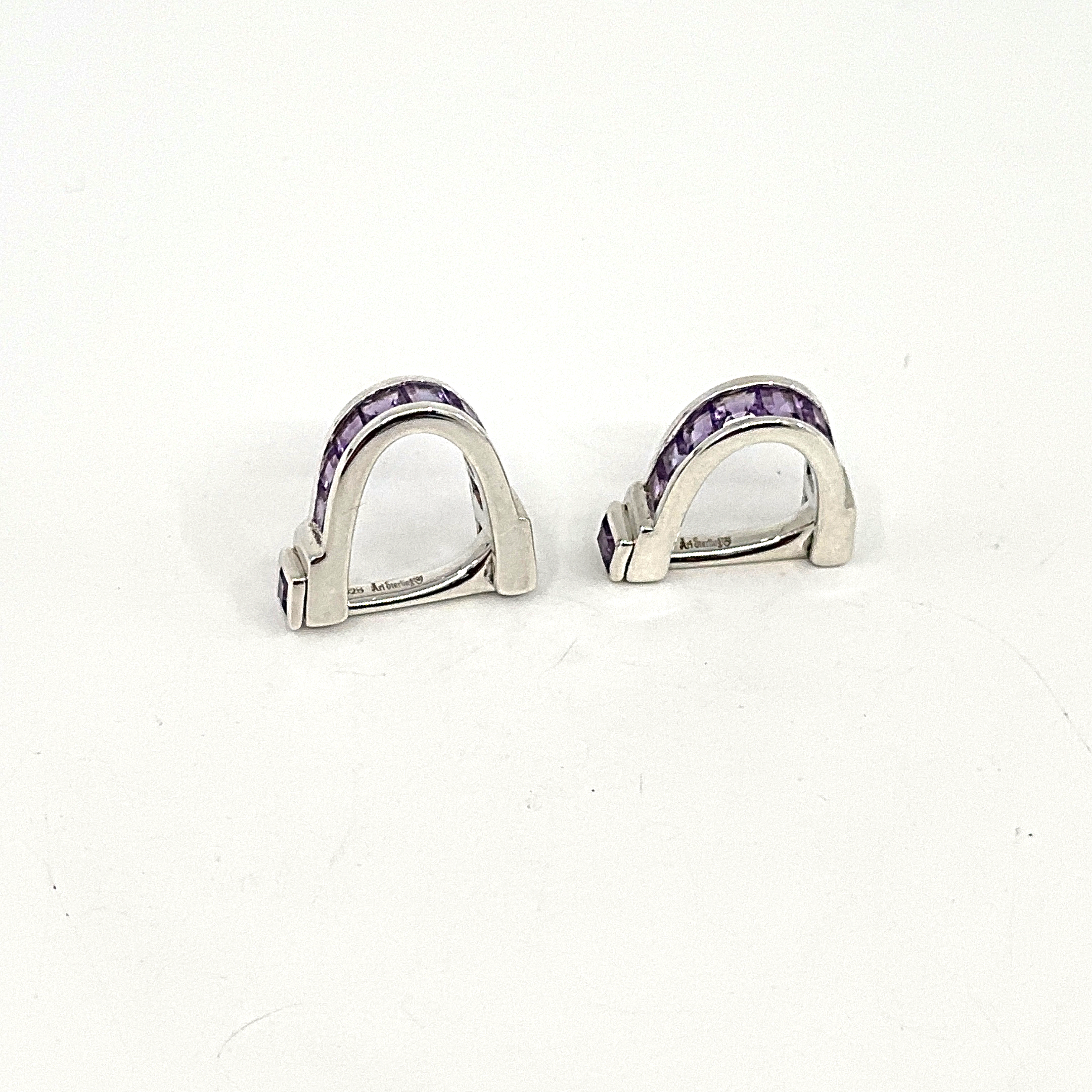 Featuring a distinctive wrap around form, these cufflinks present a sculptural design that curves smoothly around the cuff. The rich purple amethyst stones introduce depth and contrast against the polished silver, creating a refined and expressive composition.