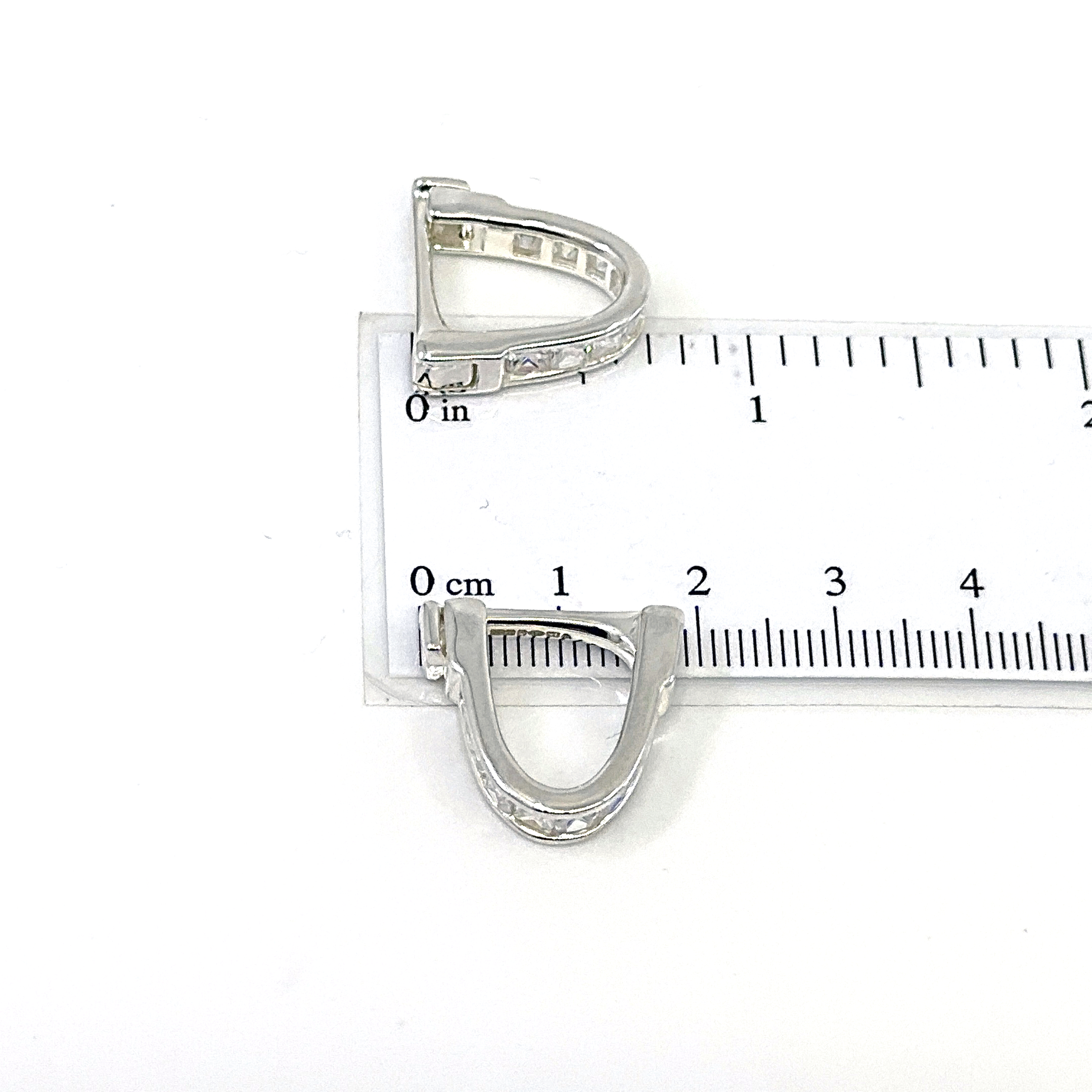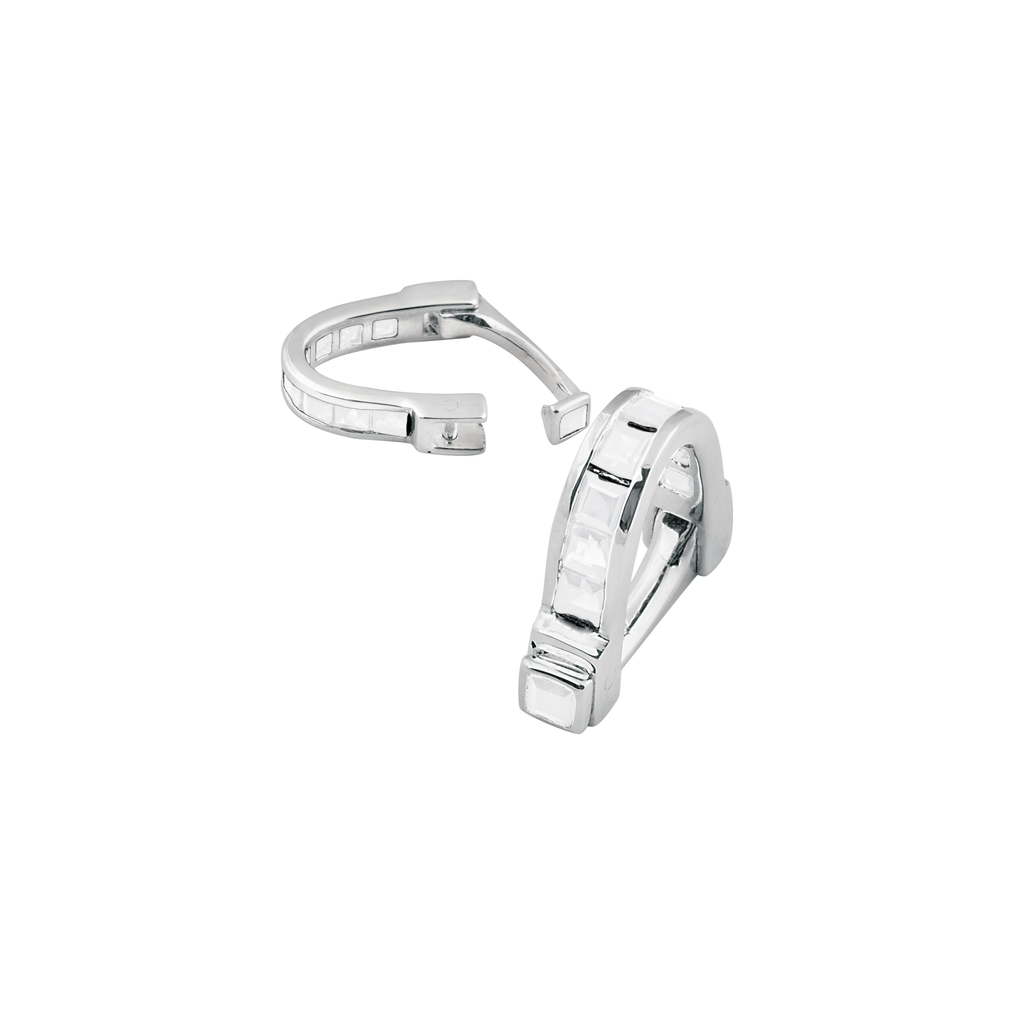 Featuring a distinctive wrap around form, these cufflinks present a sculptural design that curves smoothly around the cuff. The clear cubic zirconia stones introduce brilliance and light, creating a refined and balanced composition against the polished silver.