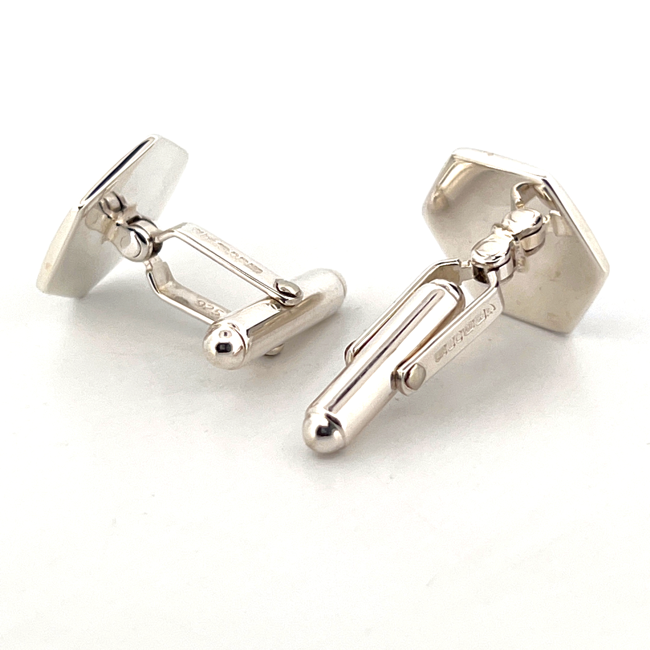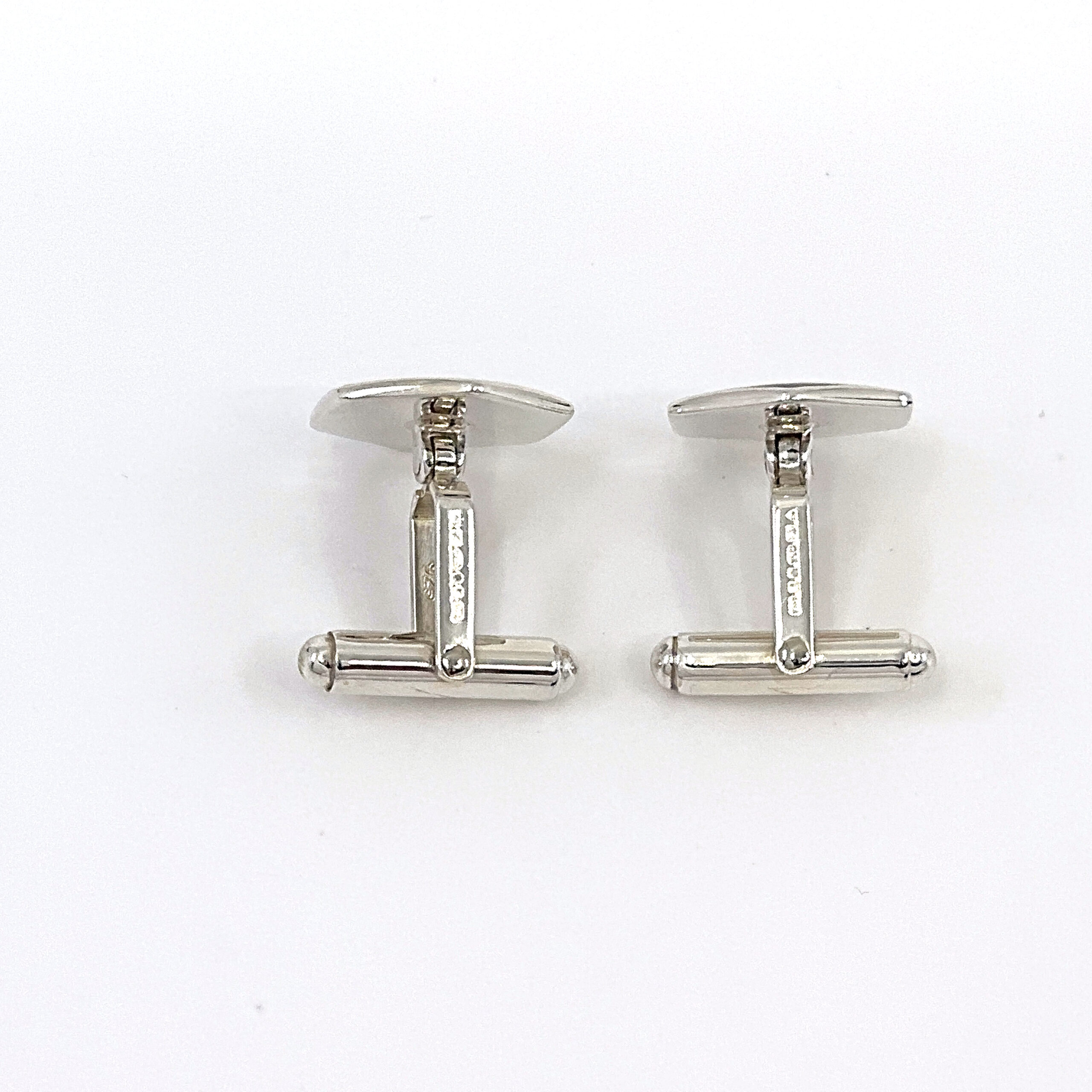 Crafted in England from 925 sterling silver and bearing English hallmarks, these cufflinks are carefully finished to achieve a smooth and consistent surface. The enamel is applied with precision, while the mother of pearl is set to enhance its natural iridescence.