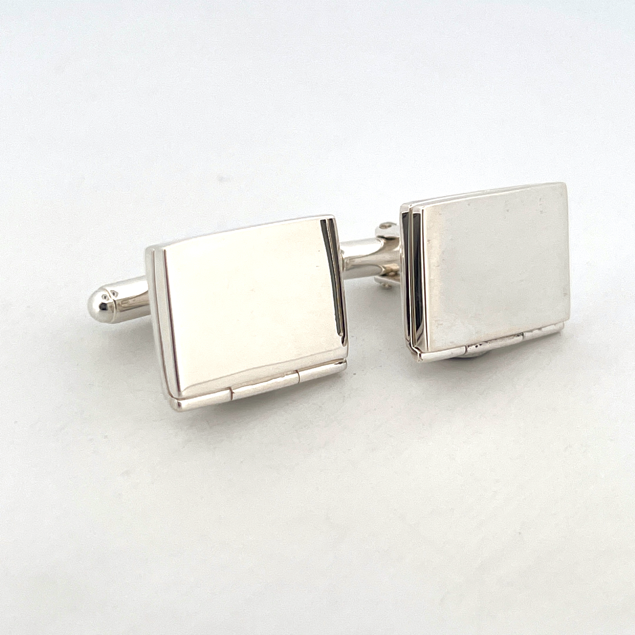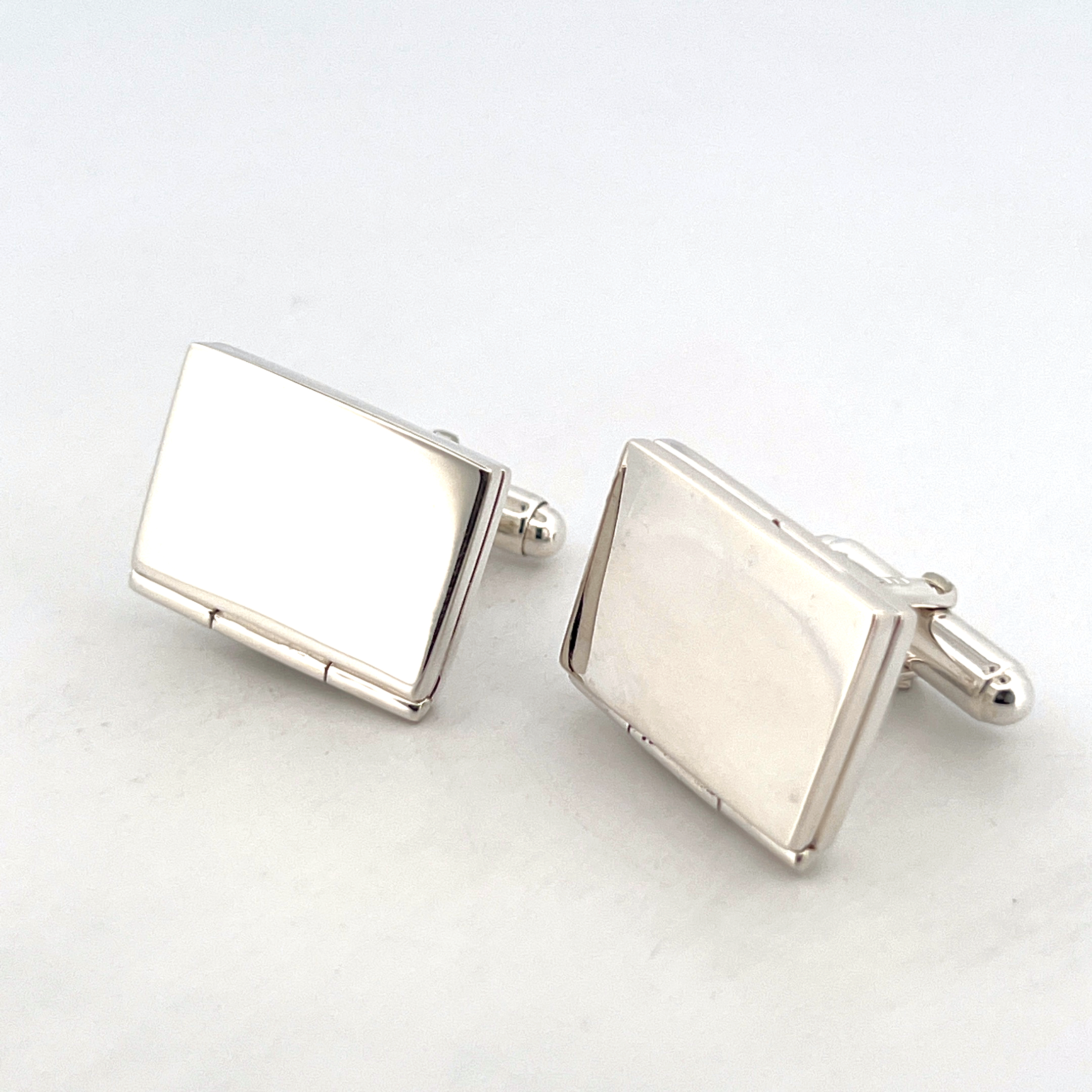 Crafted in England from 925 sterling silver and bearing English hallmarks, these cufflinks are carefully hand finished and polished. The torpedo fitting ensures ease of use and a secure closure, while the hinged locket mechanism is designed for practical and reliable use.