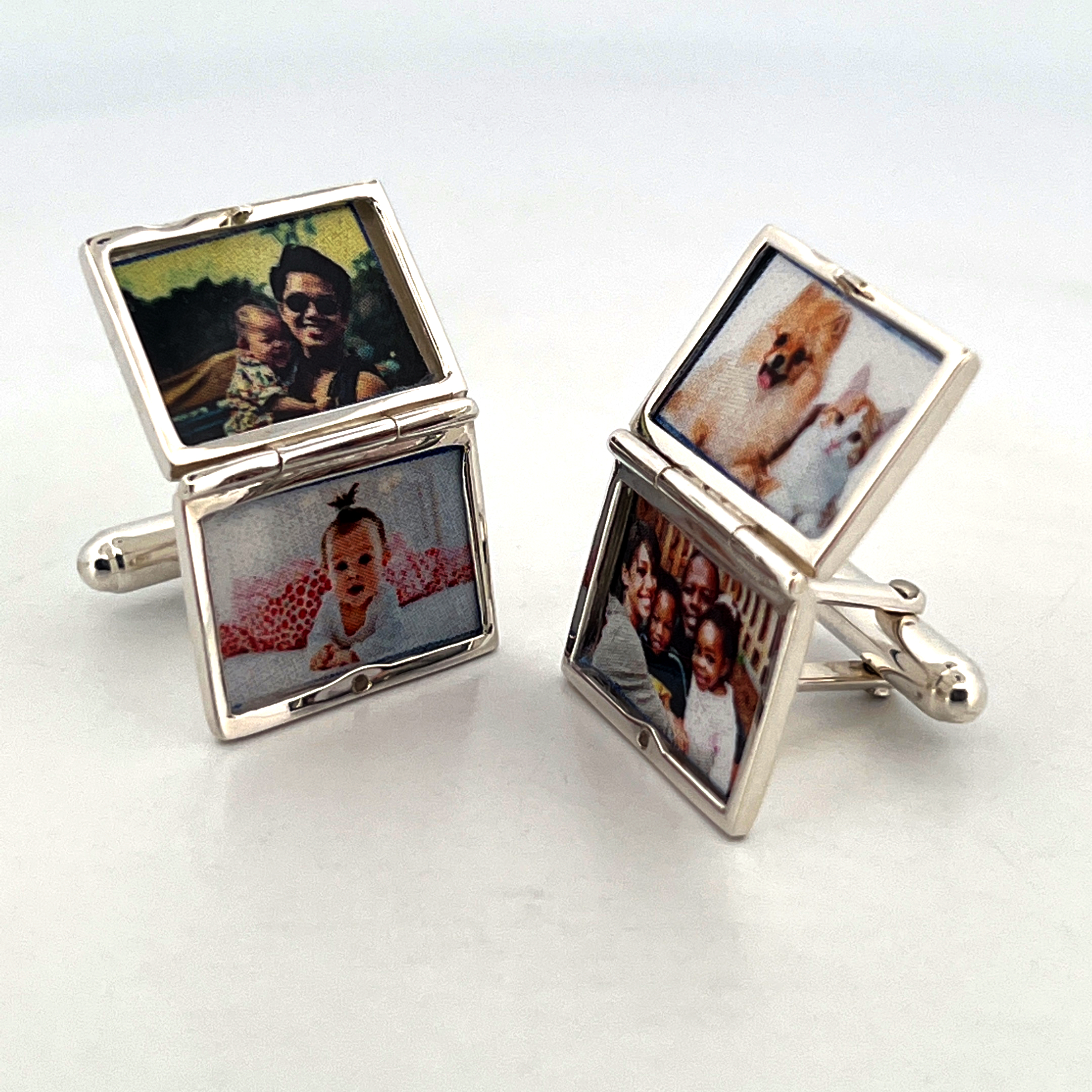 With a classic exterior and concealed locket feature, these cufflinks offer a distinctive and meaningful design. The plain outer surface provides a clean and understated appearance, while opening to reveal two miniature compartments designed to hold photographs.