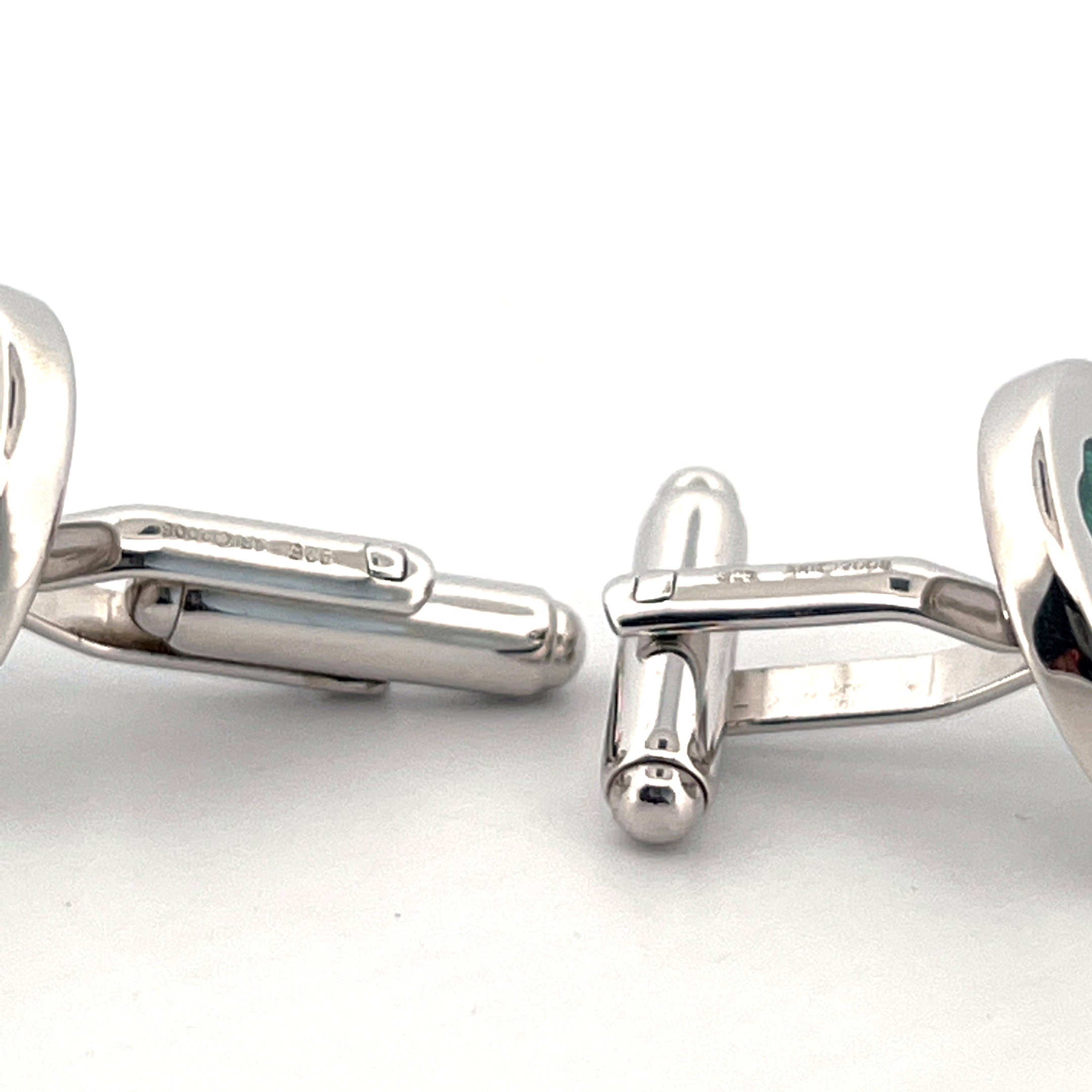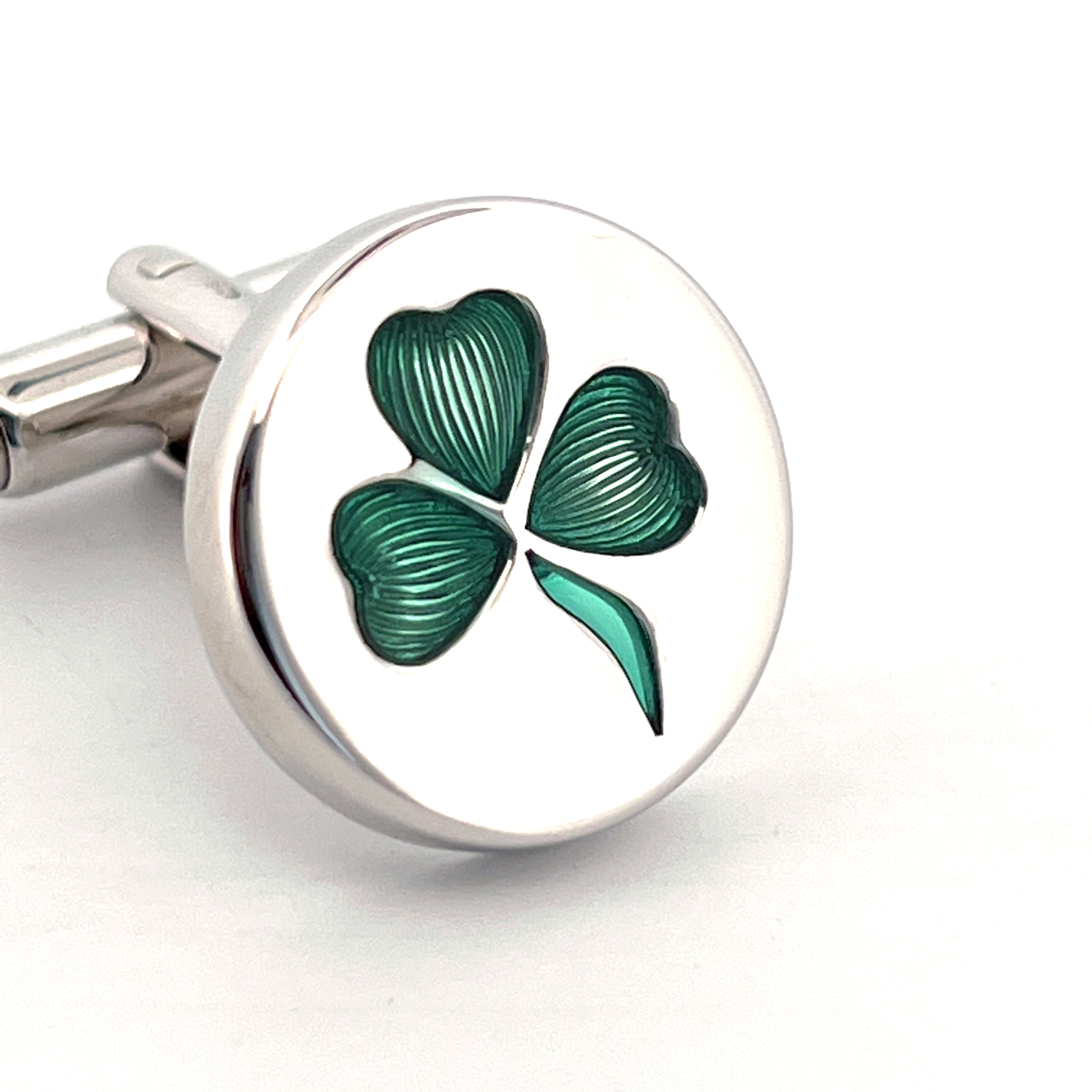 Designed in the form of a three leaf clover, these cufflinks present a symbolic motif associated with heritage, tradition and positive sentiment. The green enamel detailing defines the form of the clover, creating contrast against the polished silver and enhancing its recognisable shape.