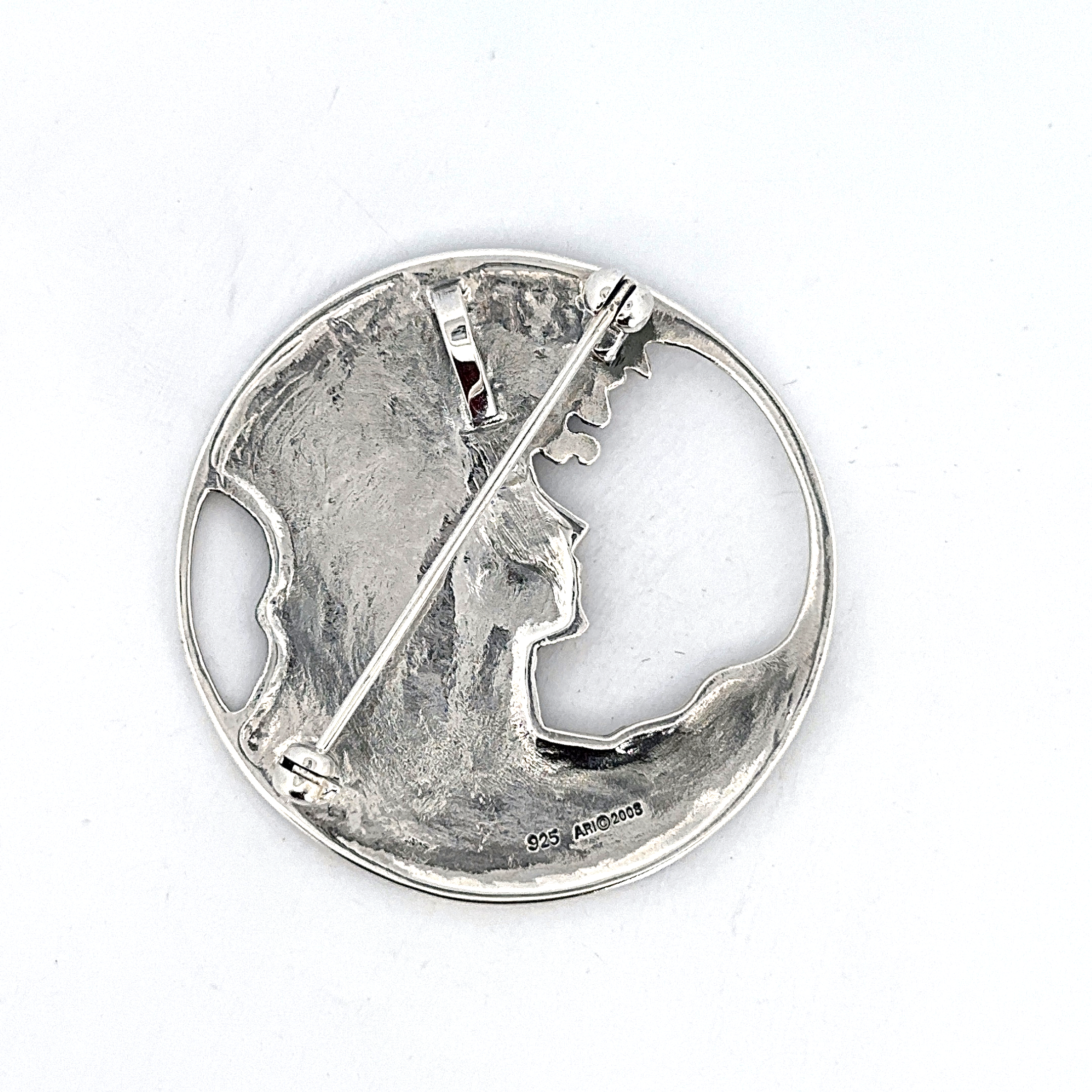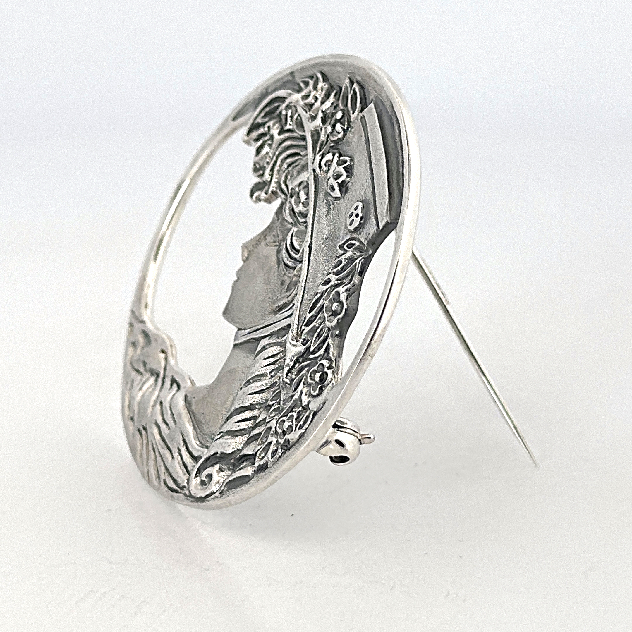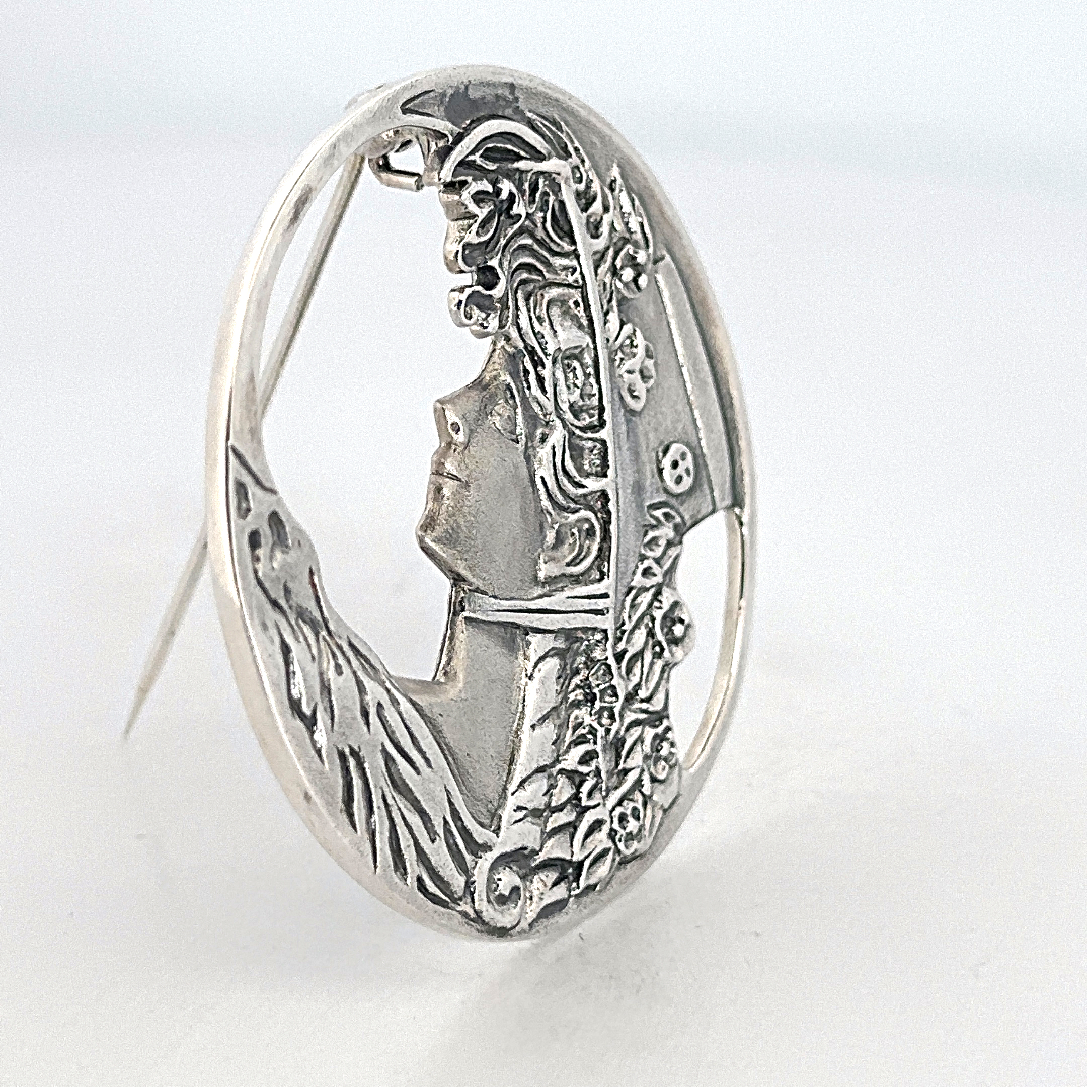 Lady Head Brooch Art Nouveau Style, finished in 925 English Hallmarked Sterling Silver