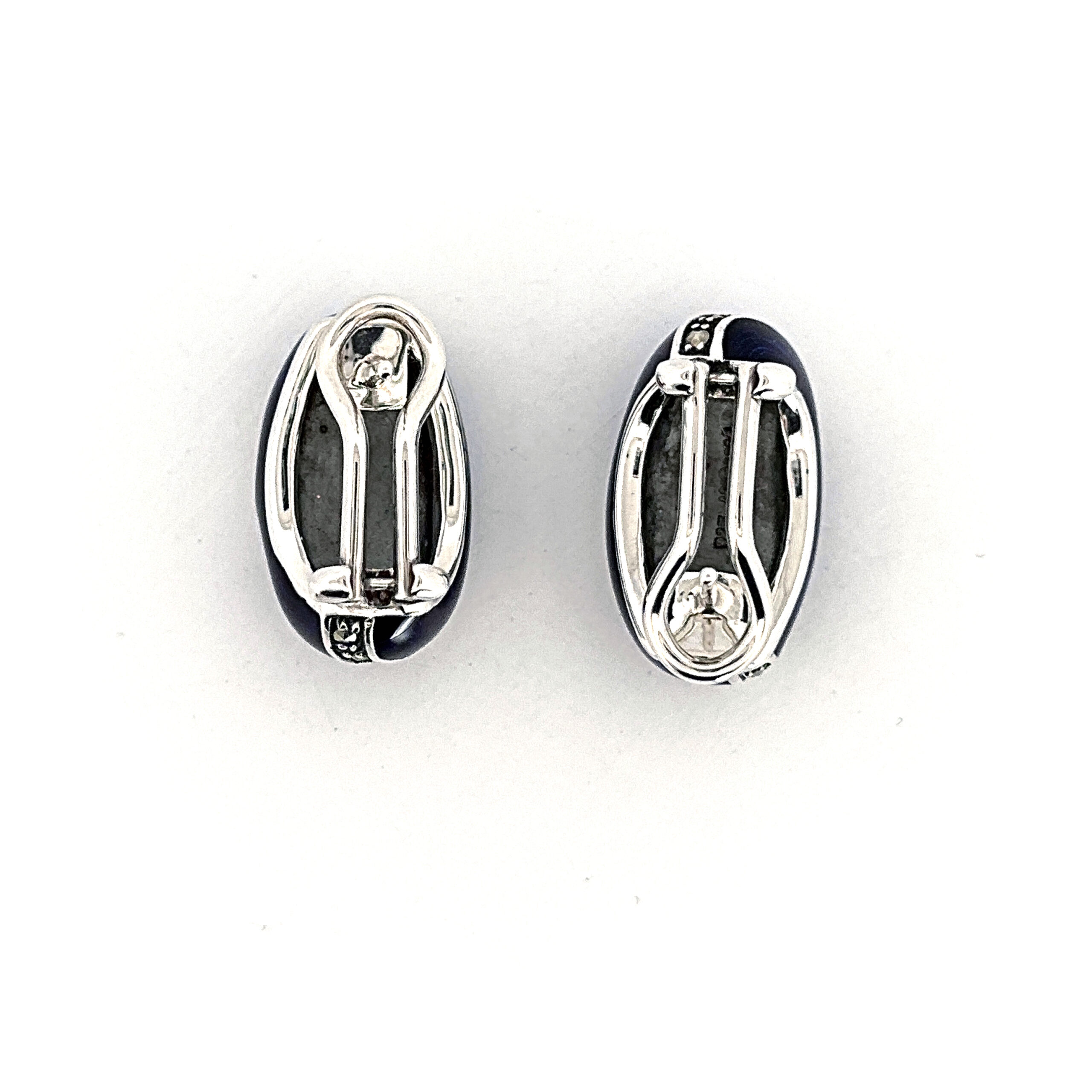 Blue enamel introduces a vivid contrast across the surface, while marcasite detailing adds texture and depth. The drop format provides gentle movement, enhancing the overall composition without compromising its structured appearance.