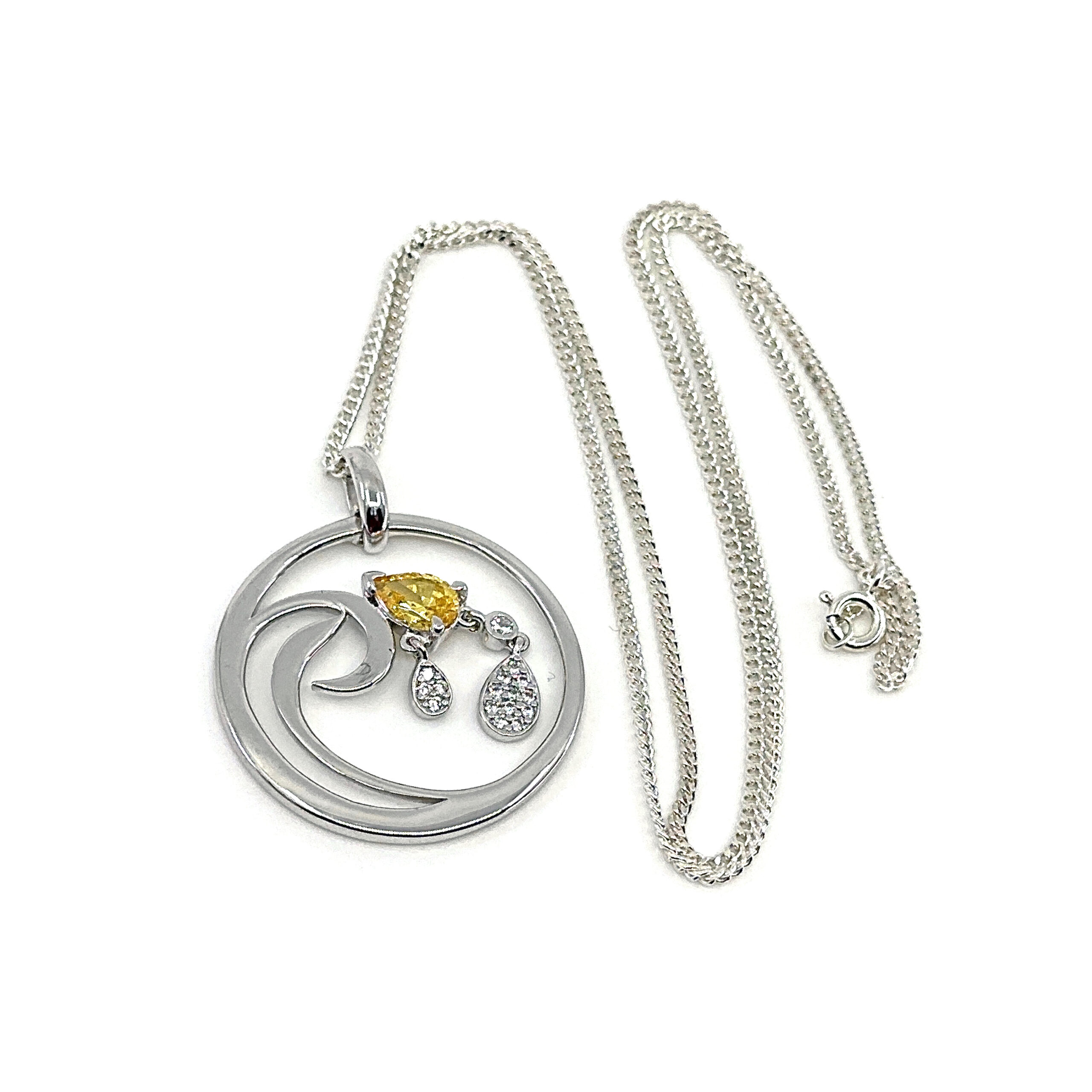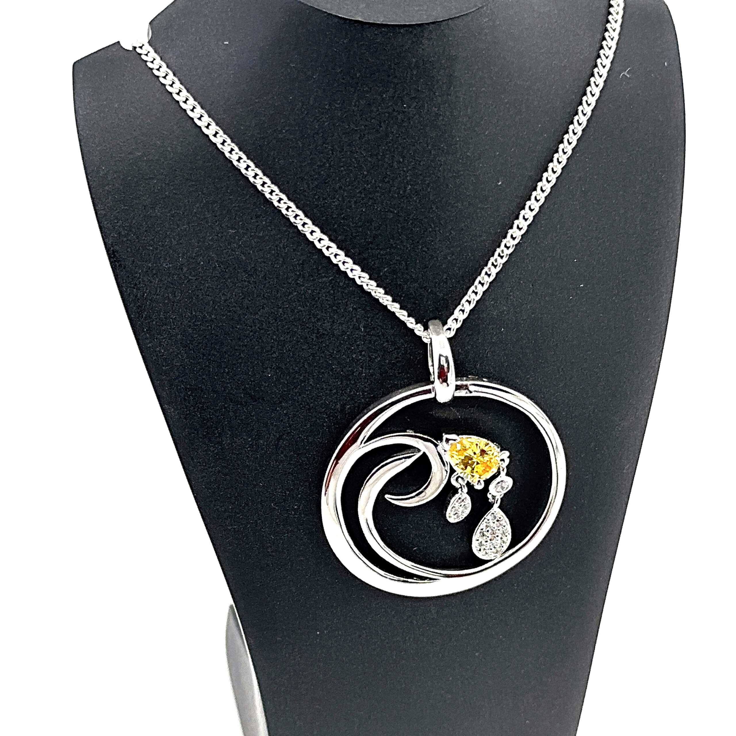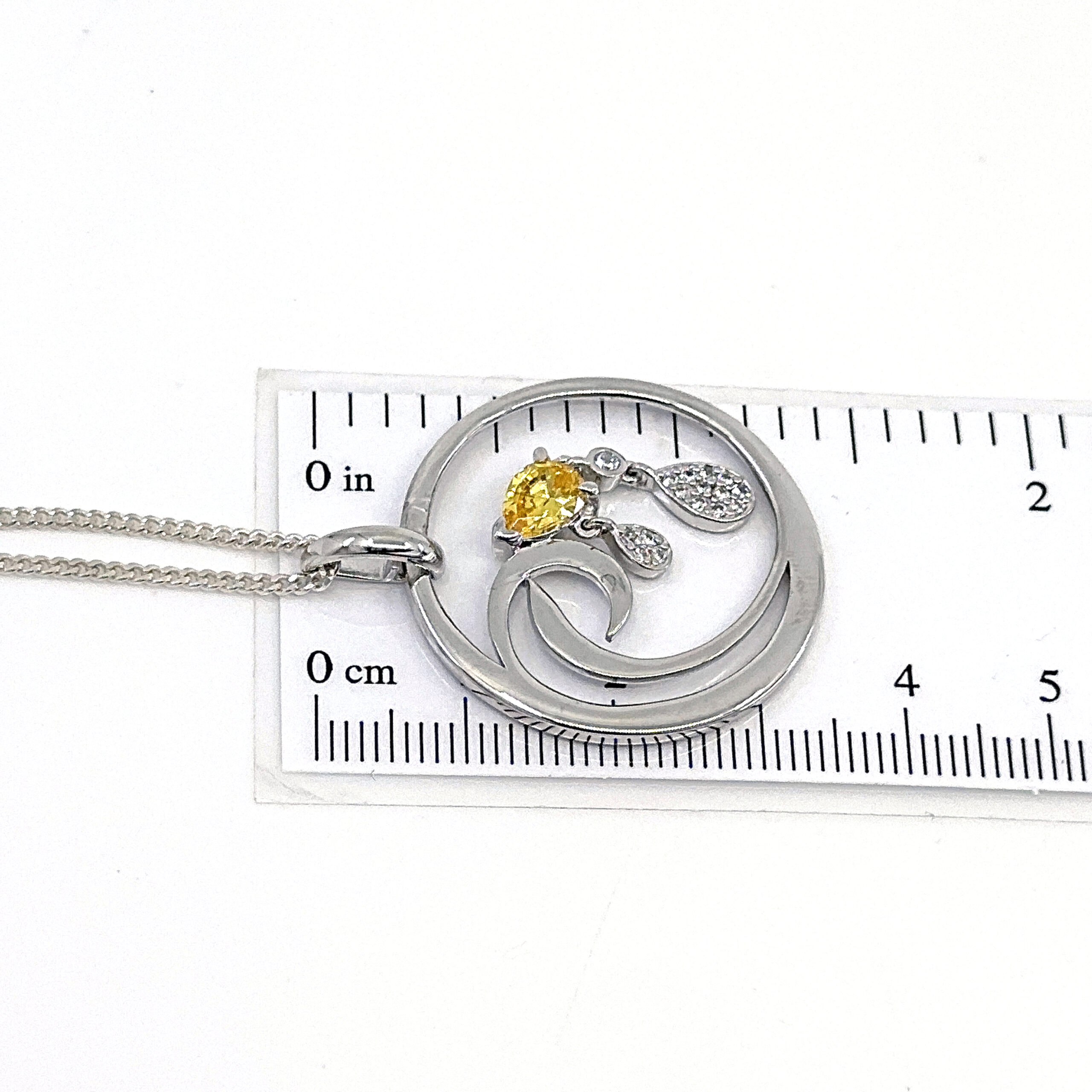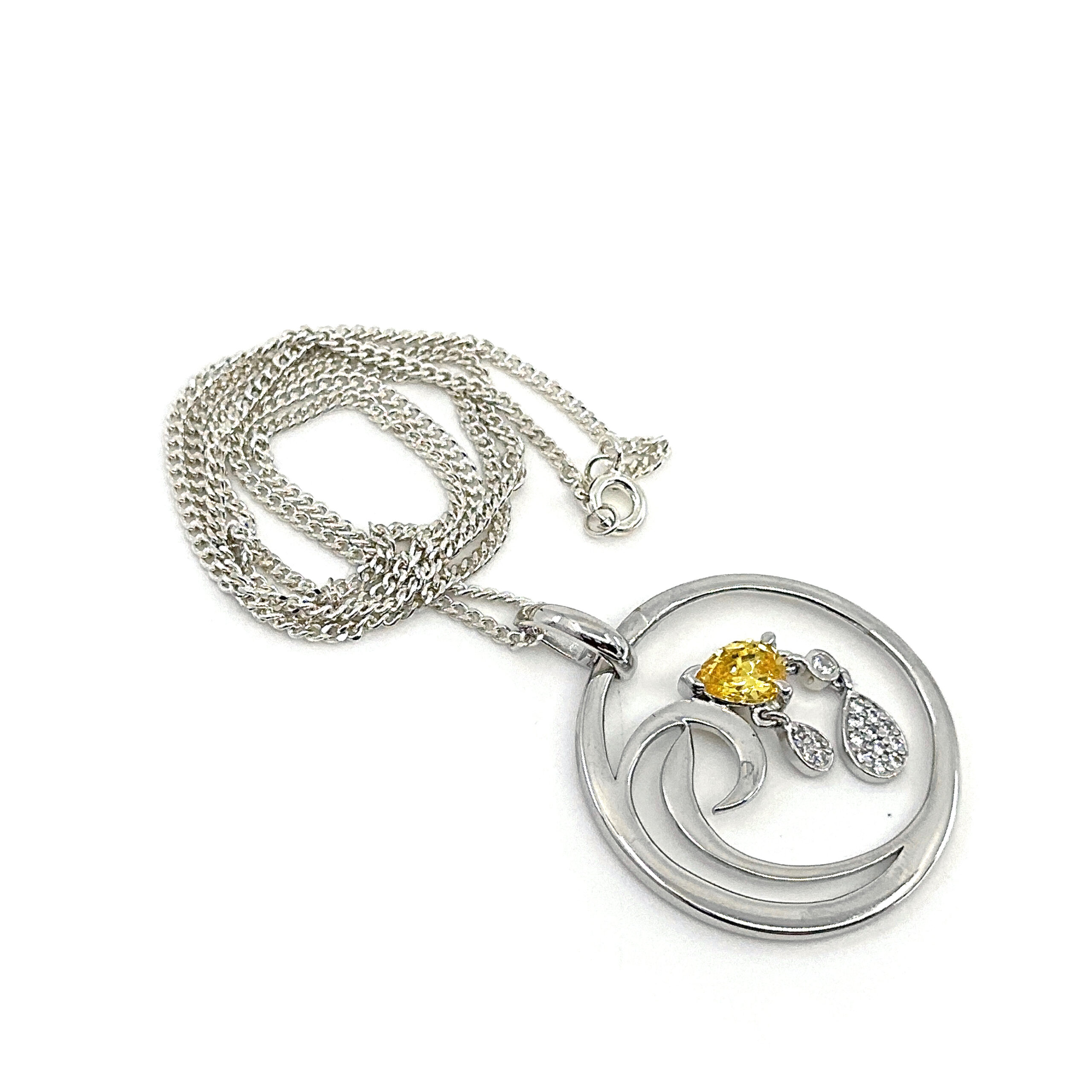 Citrine is paired with cubic zirconia to create contrast between warm colour and clear brilliance. The combination adds visual interest without excess, resulting in a refined piece with lasting decorative appeal.