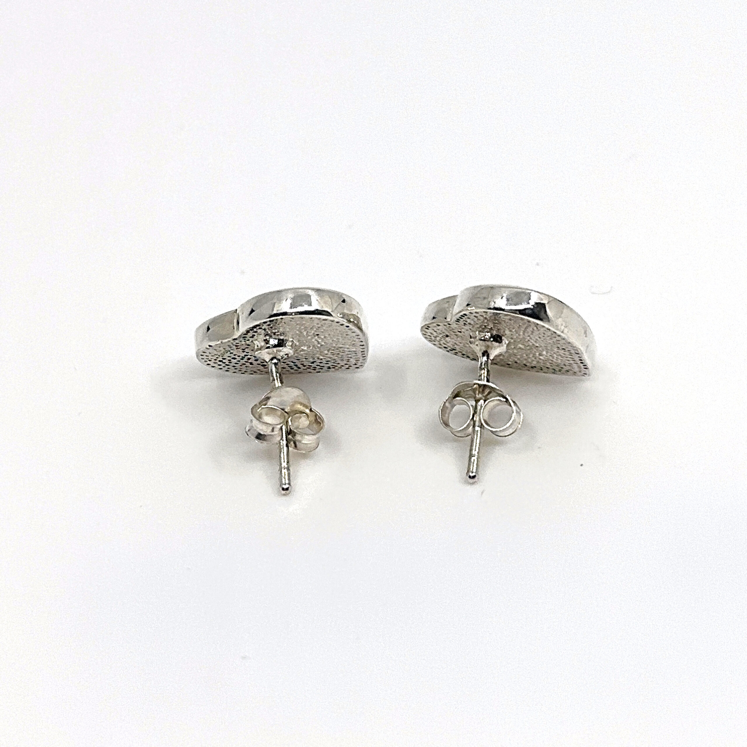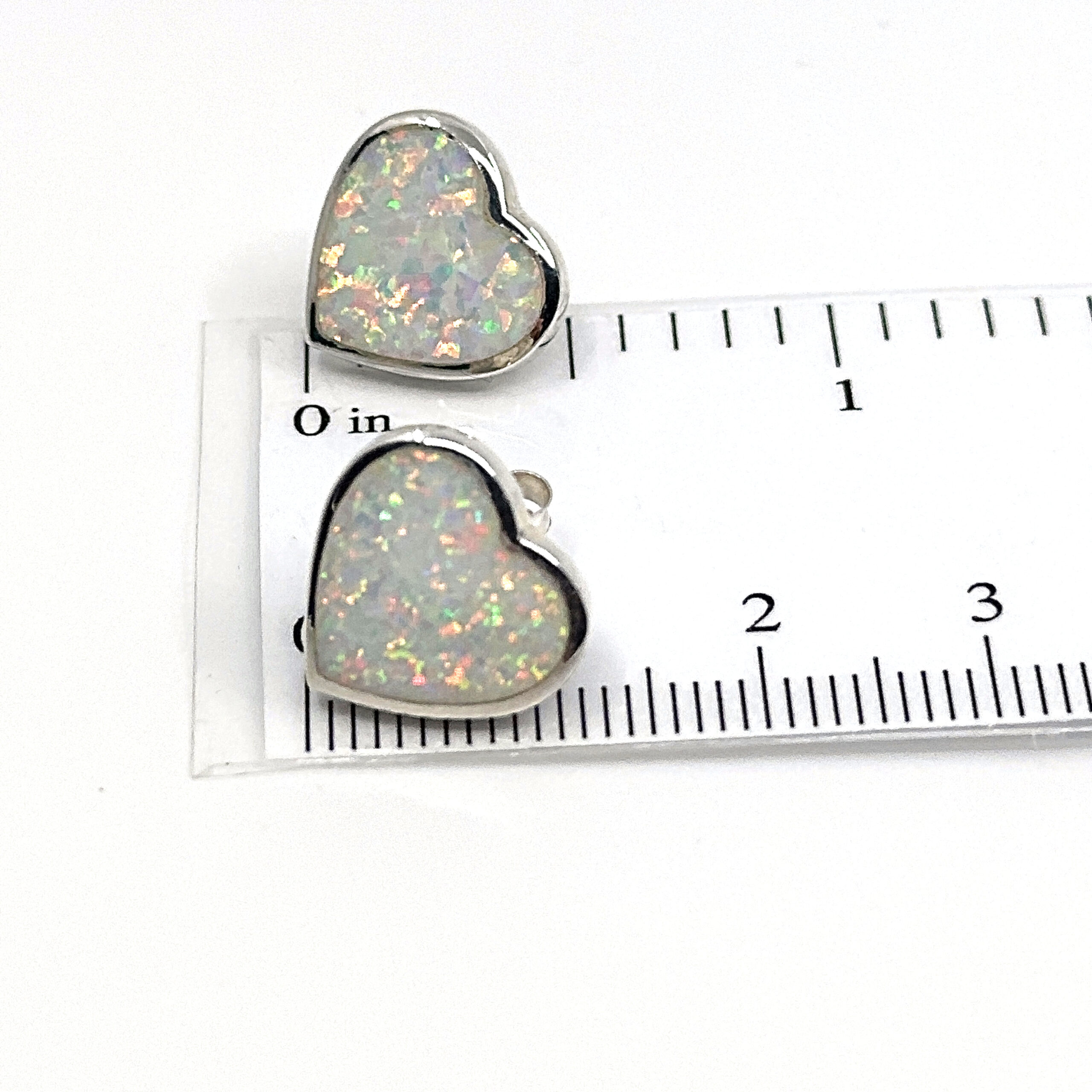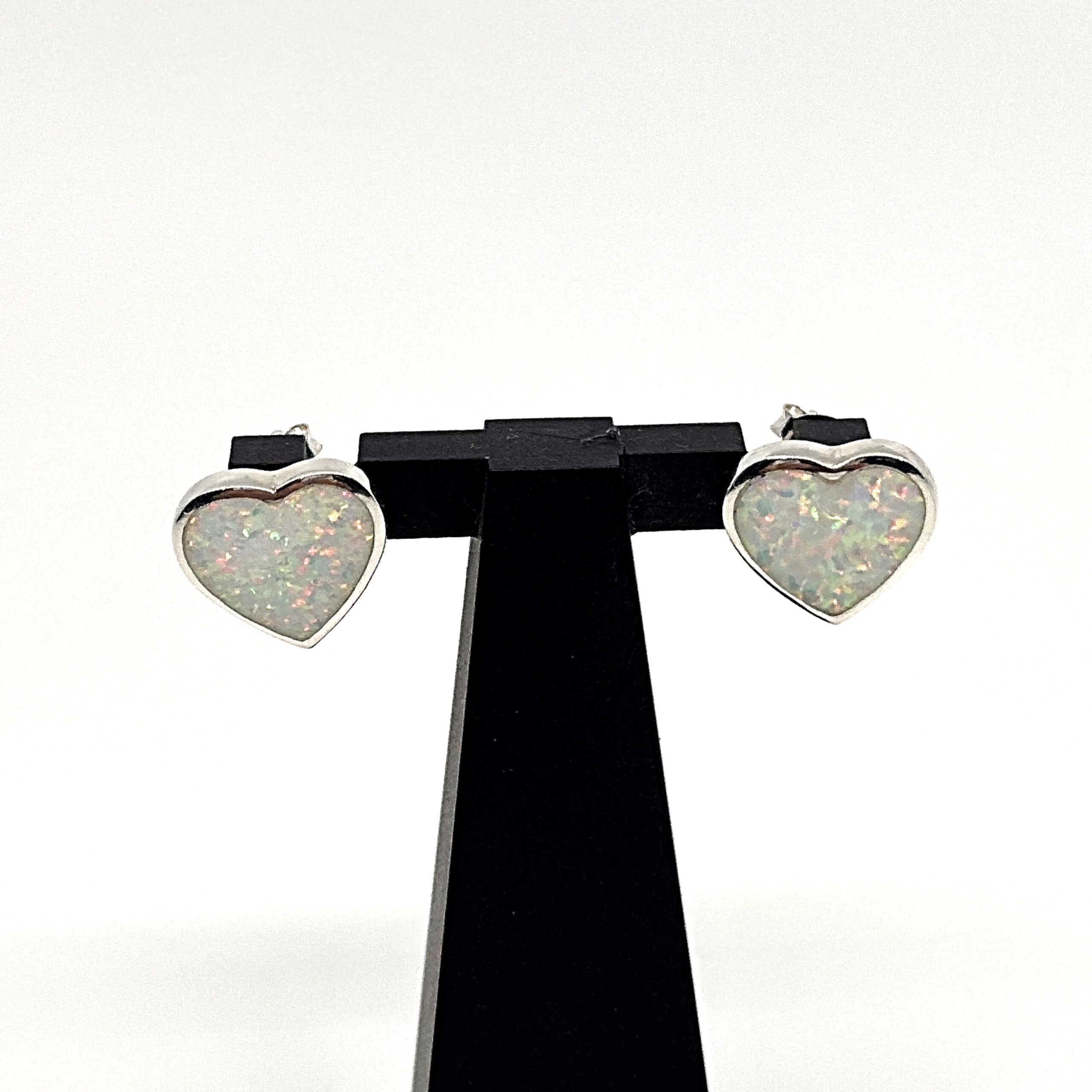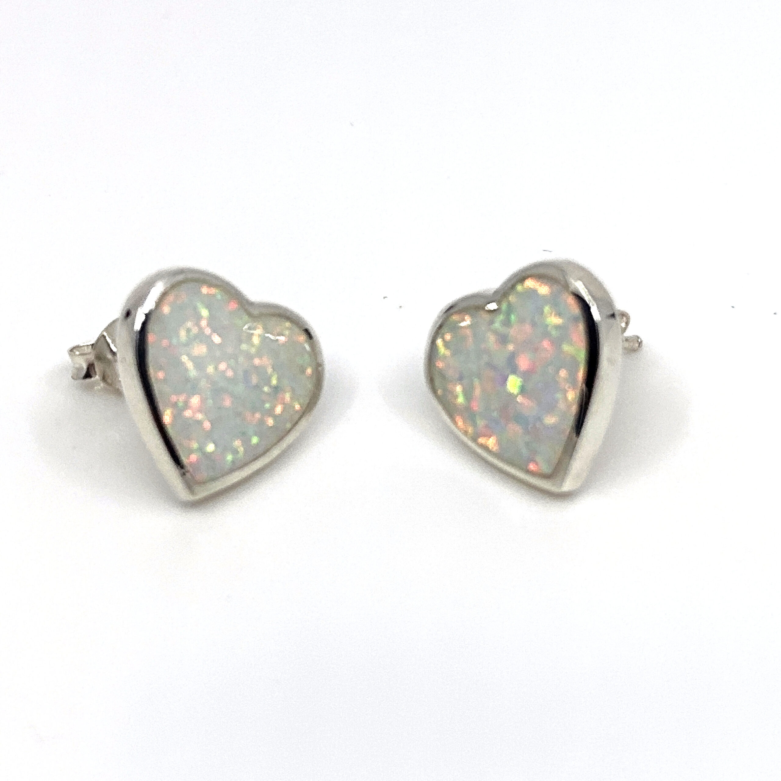 Be the first to review “Heart Shaped Stud Earrings With White Crushed Opal Resin Detail Finished In 925 English Hallmarked Sterling Silver”