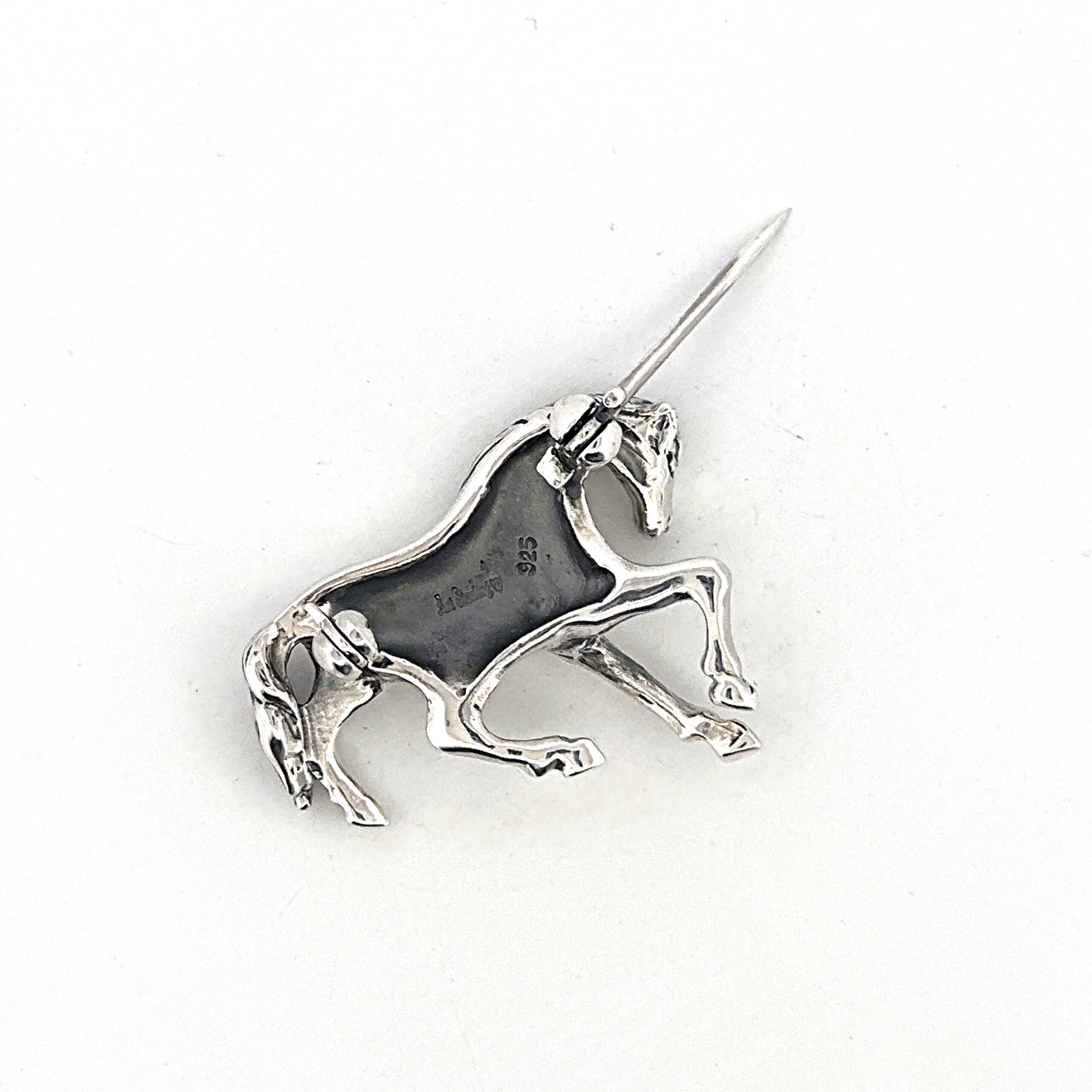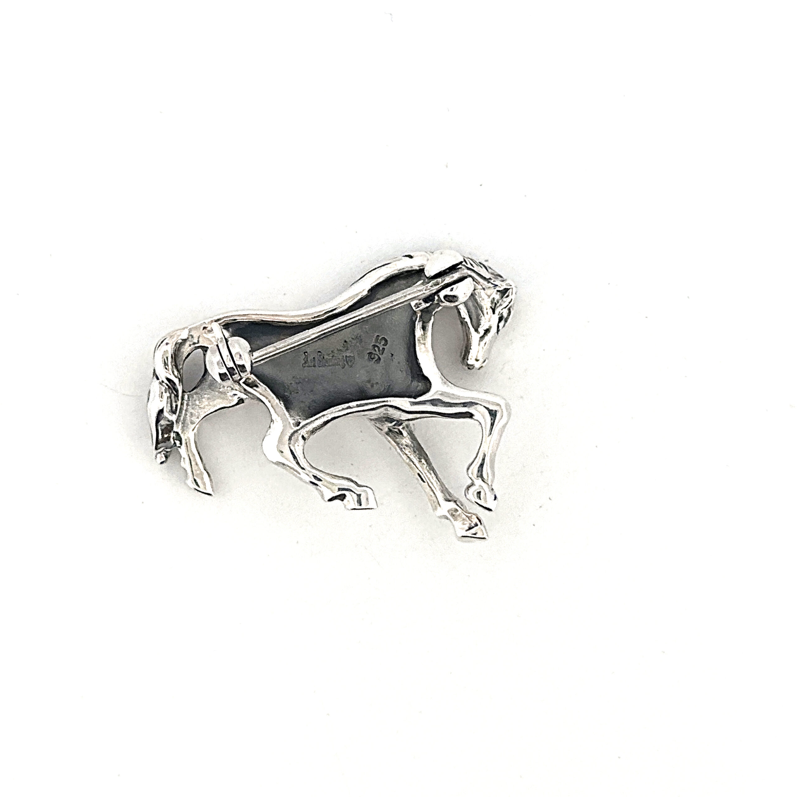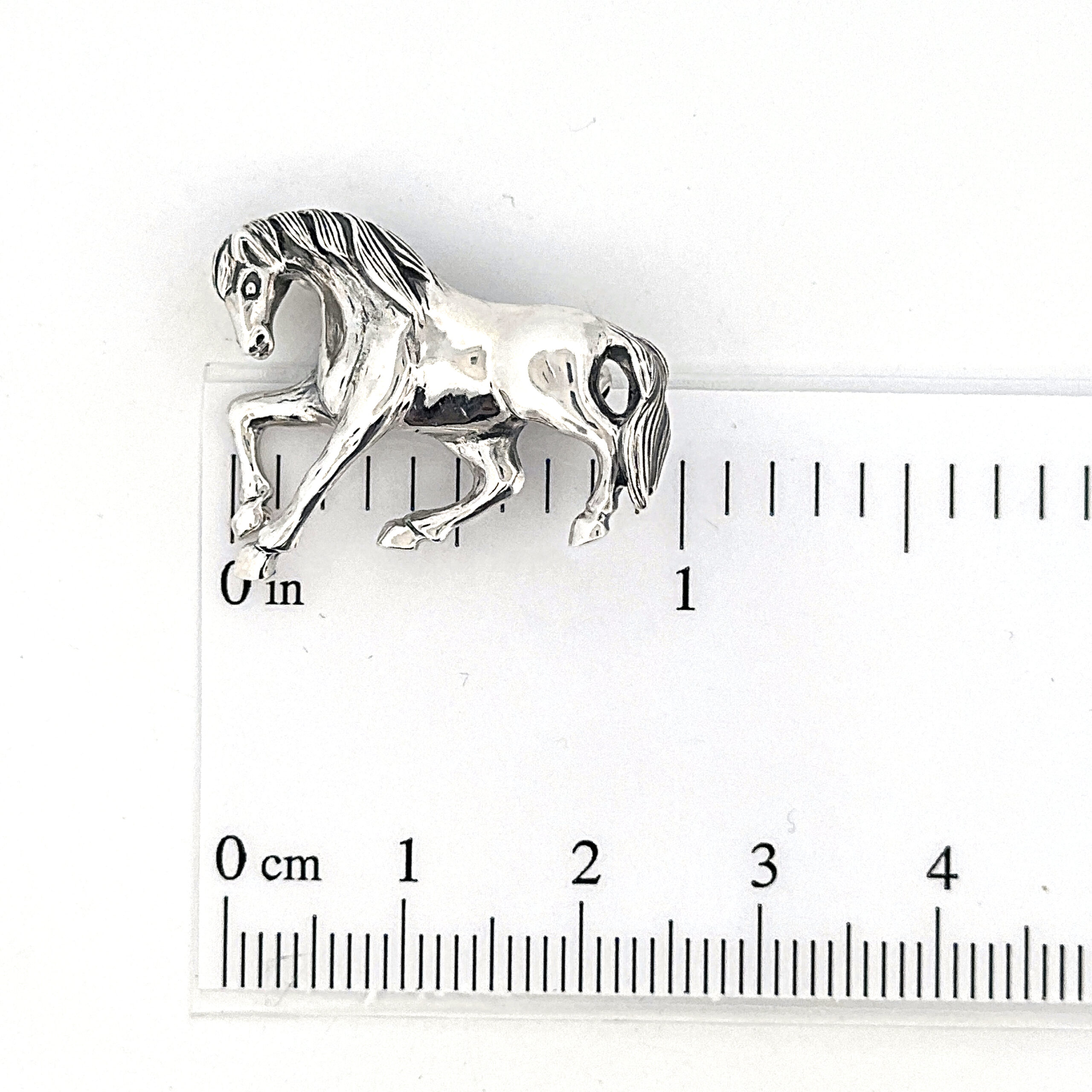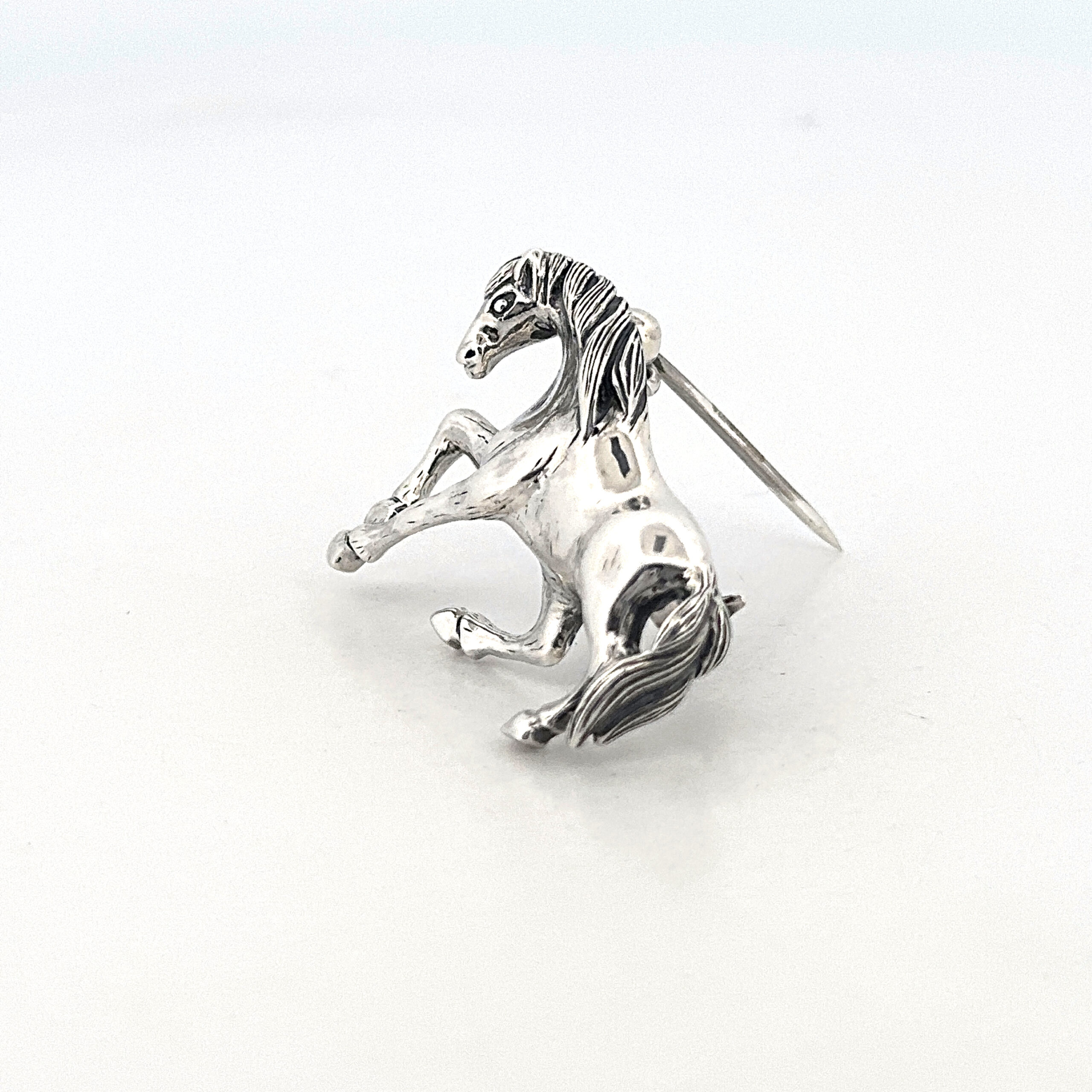 The simplified yet expressive detailing allows the form to remain clear and recognisable, while the proportions ensure it sits comfortably when worn. The design reflects an appreciation for equestrian subjects, interpreted through a clean and considered silhouette.