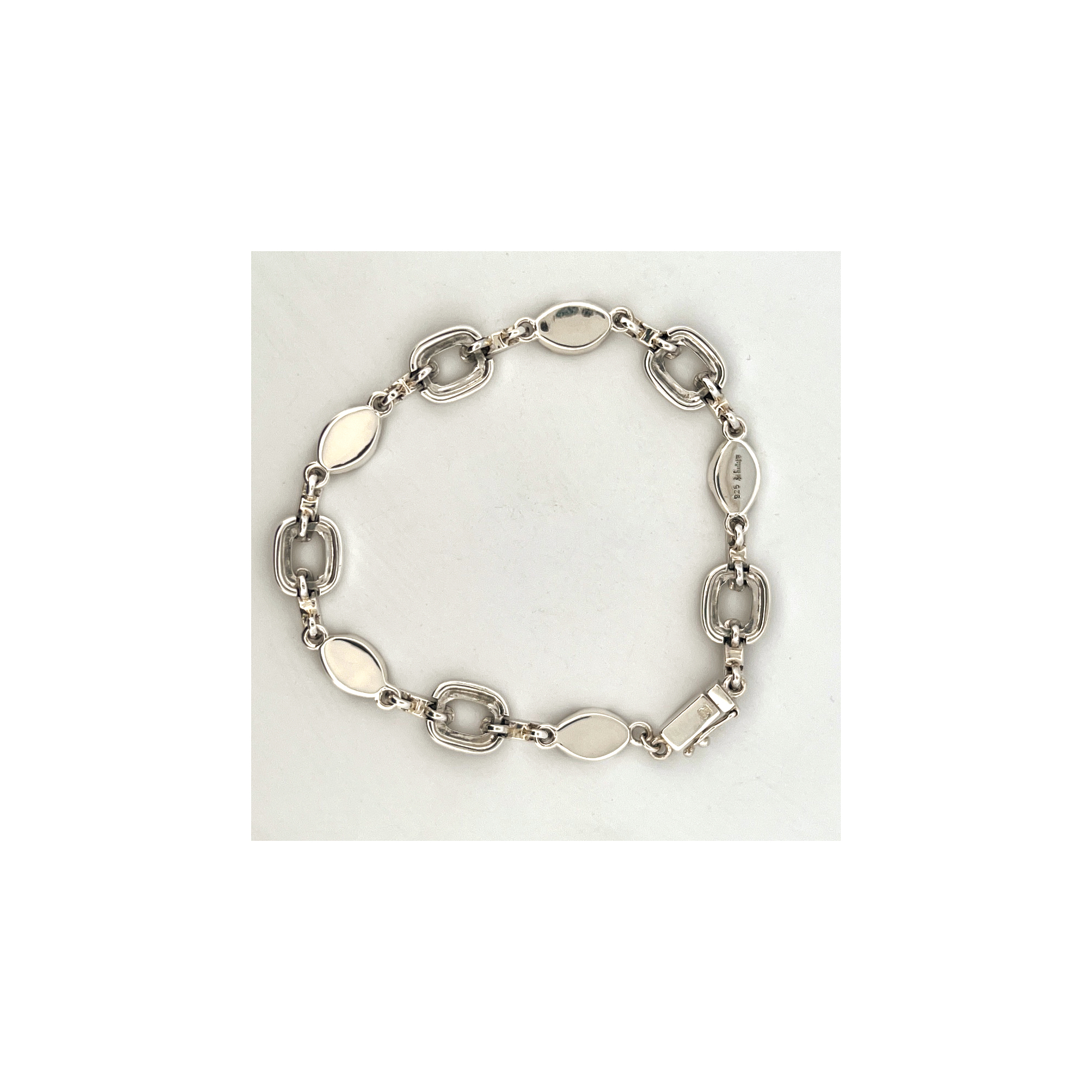 The articulated construction allows the bracelet to sit naturally along the wrist, while the combination of materials introduces depth and subtle variation. The overall effect is one of quiet distinction, grounded in classic decorative traditions.