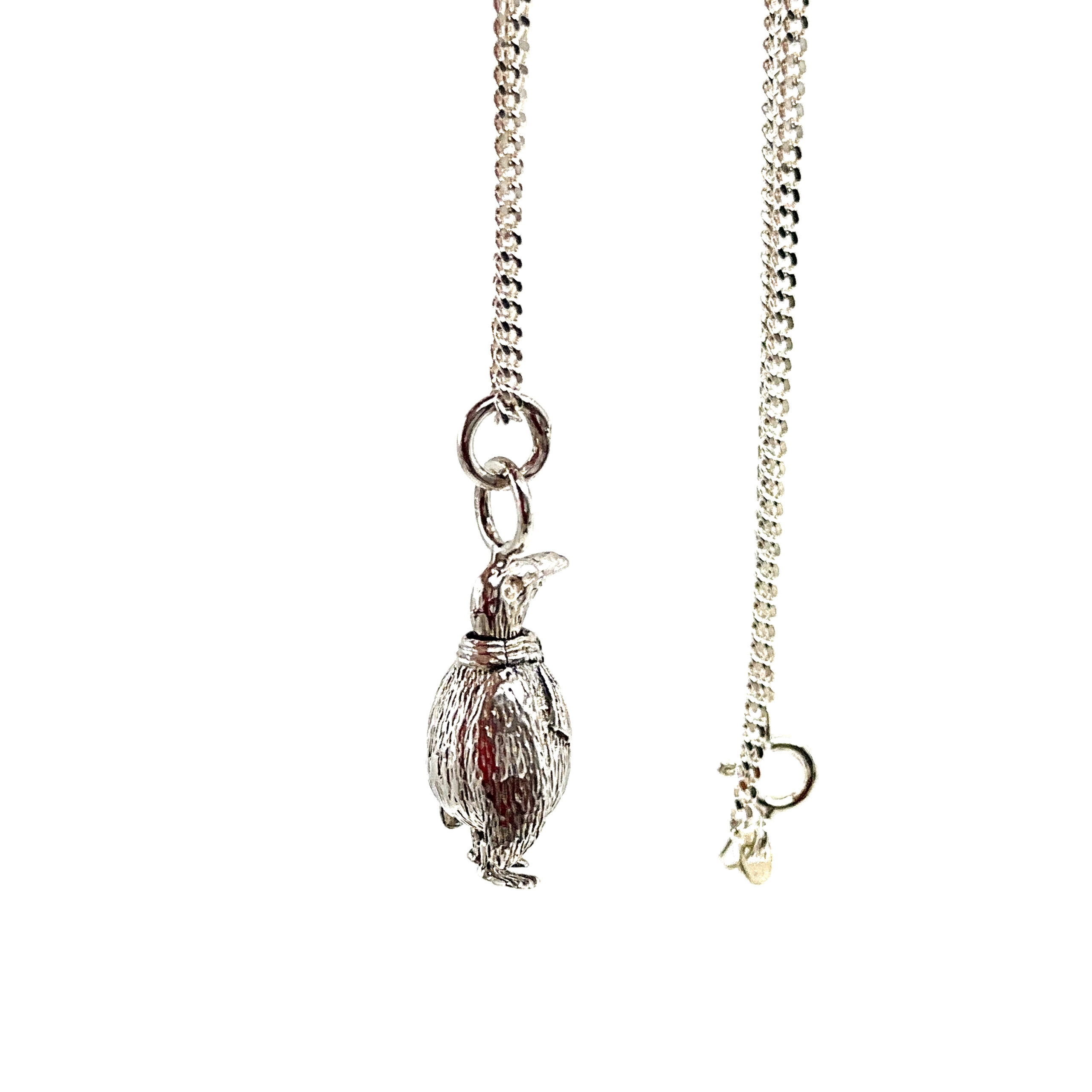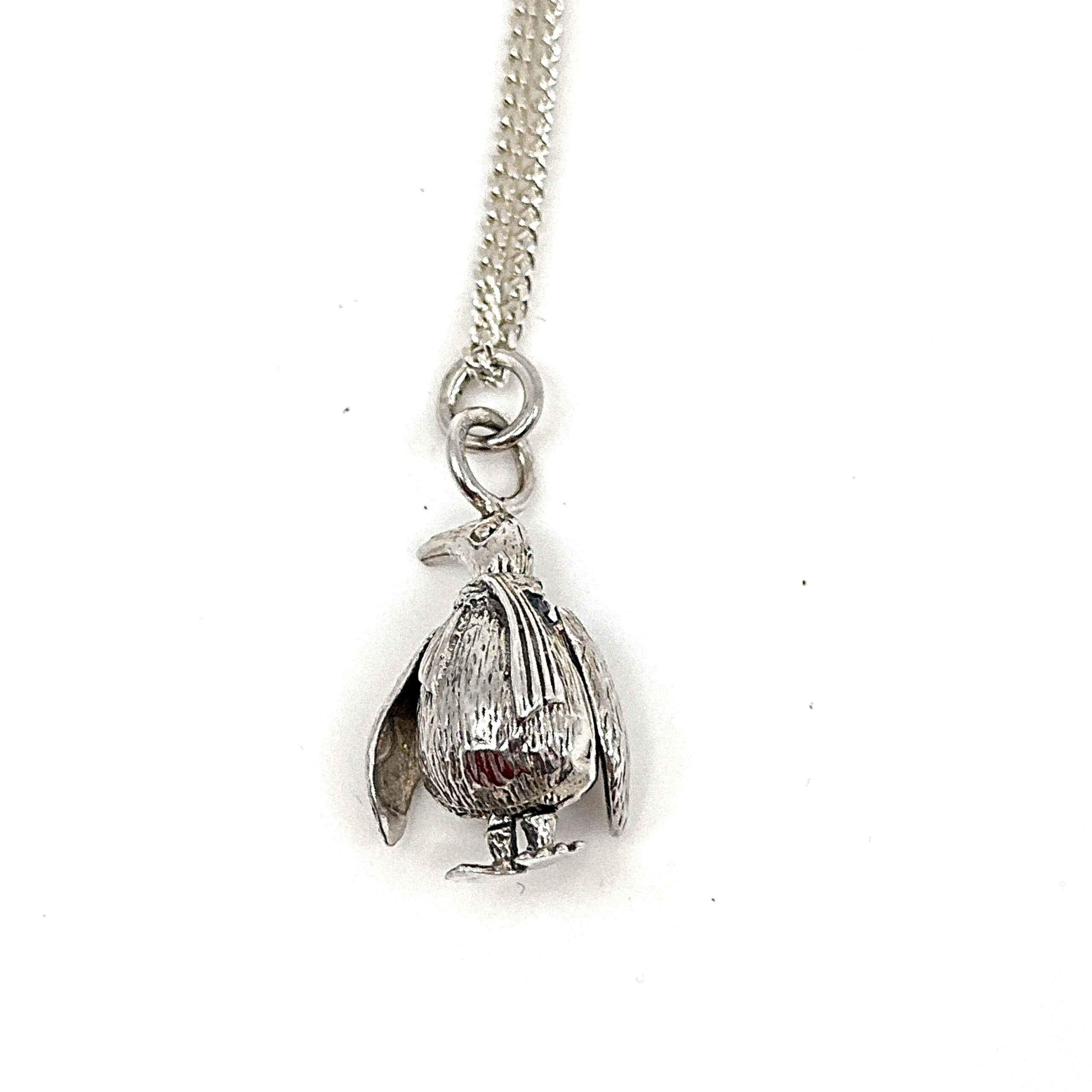 An adorable British hallmarked sterling silver pendant makes a heartfelt gift for a child, whilst ensuring you are also investing in a family heirloom of the future. This meticulously made and hand polished sterling silver moving penguin pendant is truly sweet and unique. The moving element adds extra interest and charm, whilst the sterling silver chain is an essential addition to any jewellery box.