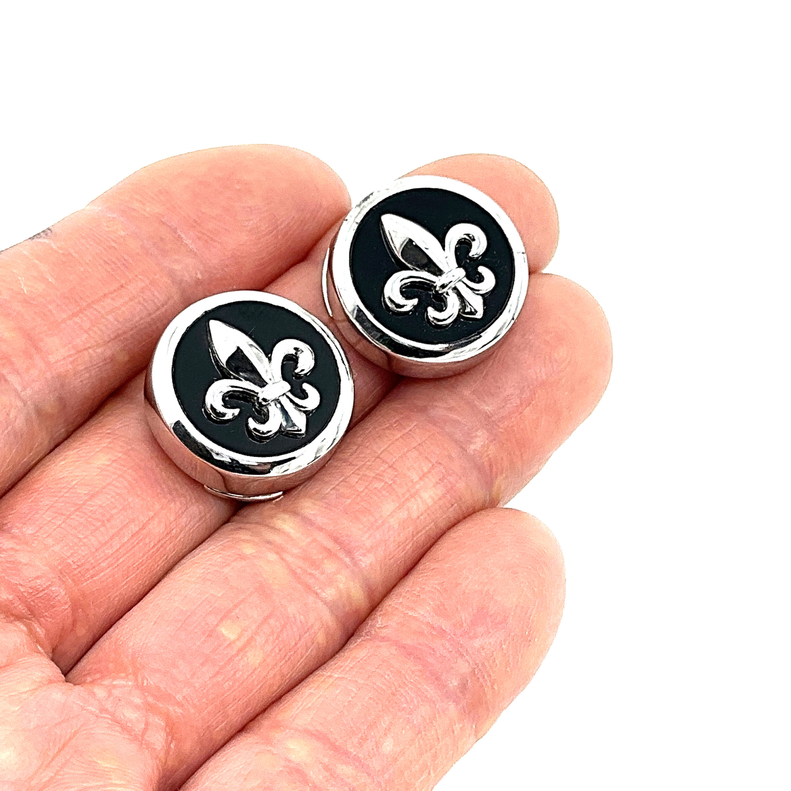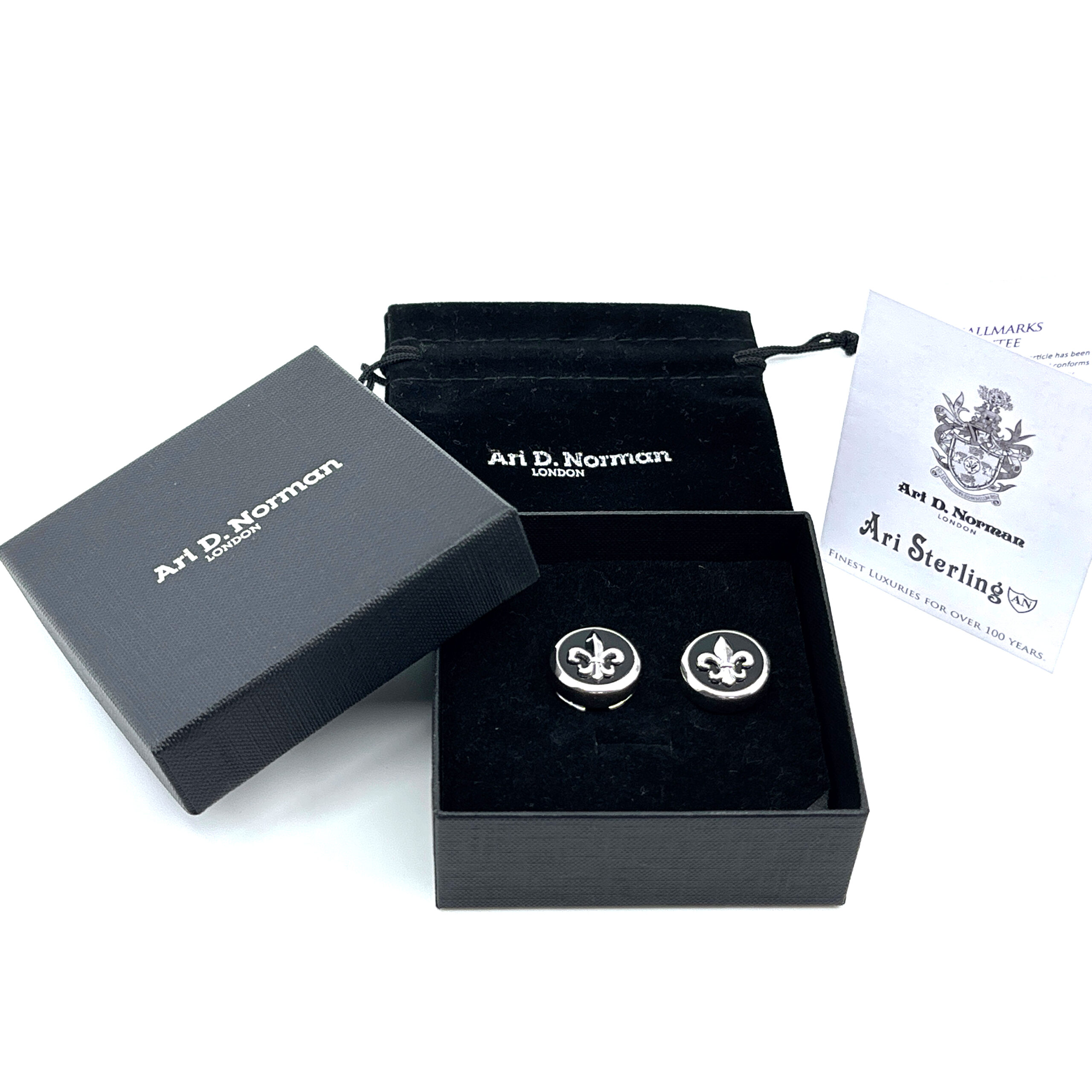 Each piece is handcrafted using traditional silversmithing techniques and carefully finished for a smooth, polished surface. The raised Fleur De Lys motif is precisely formed and set against black enamel, creating depth, clarity, and lasting visual definition.
