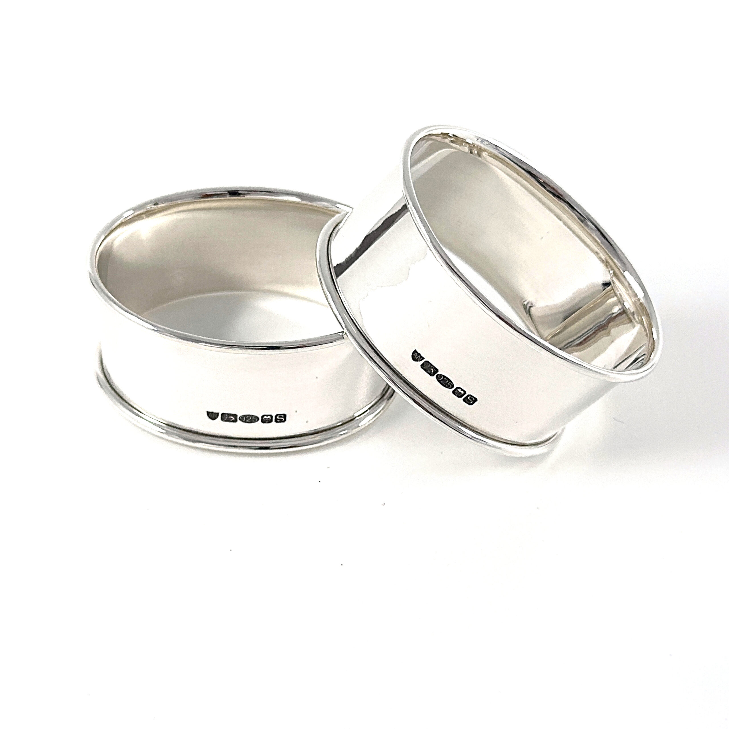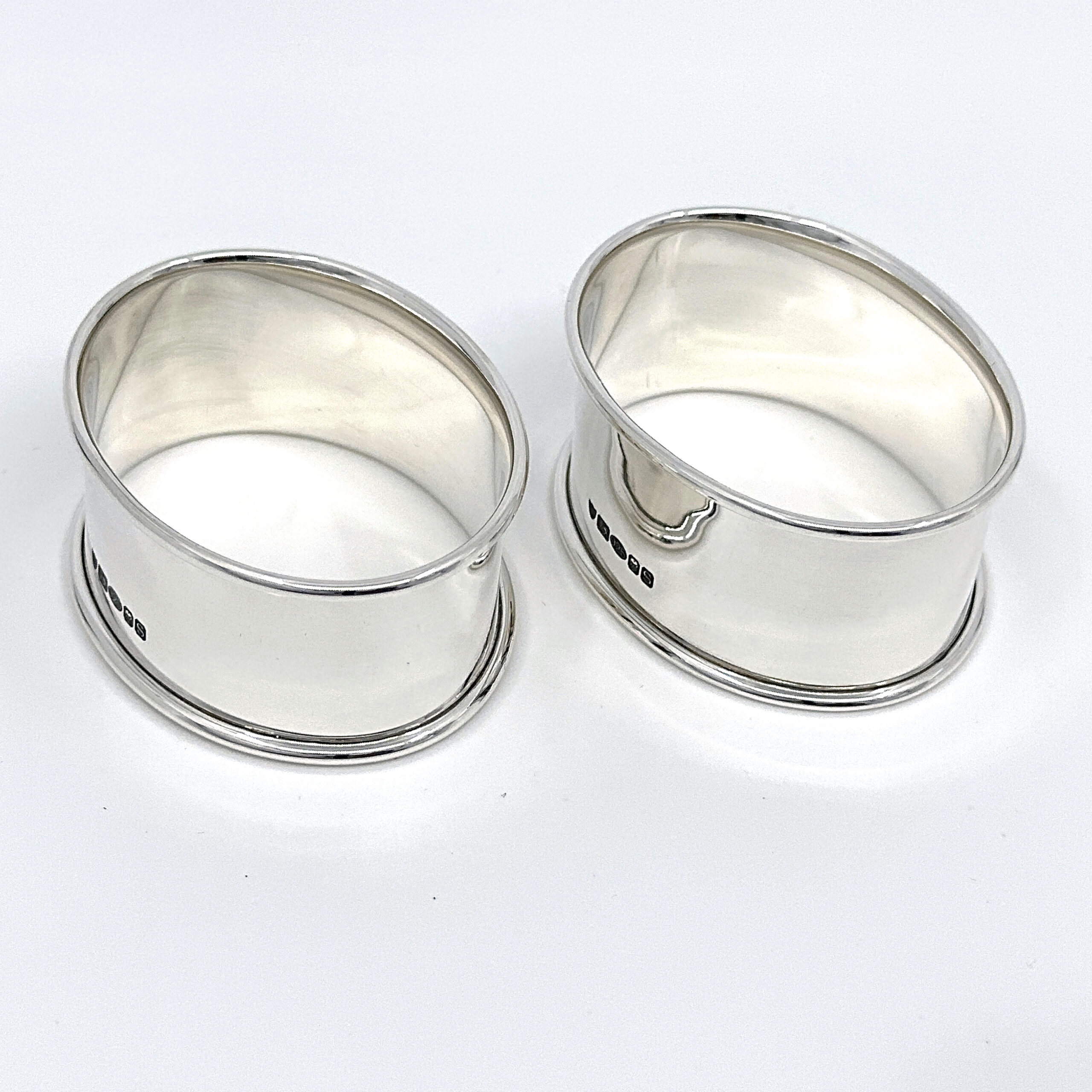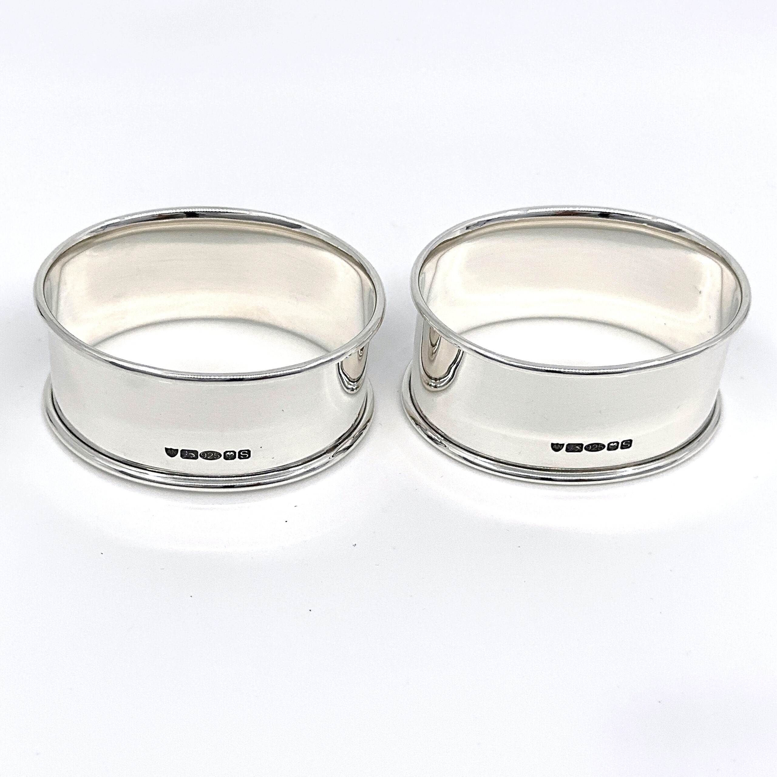 Pair Plain Oval Serviette Rings, finished in 925 English Hallmarked Sterling Silver