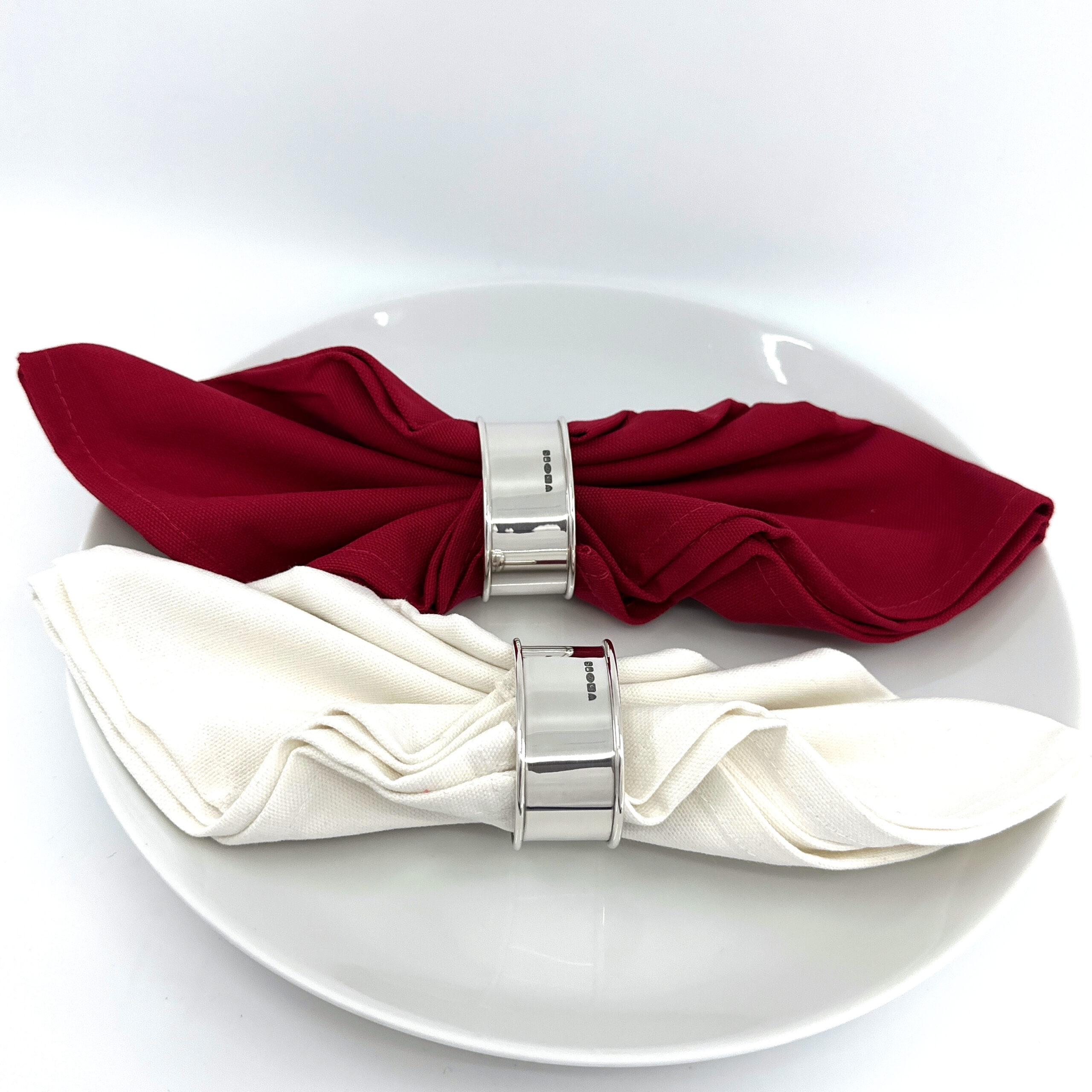 A pair of plain oval serviette rings with a smooth, refined finish, designed for classic table settings and optional engraving.