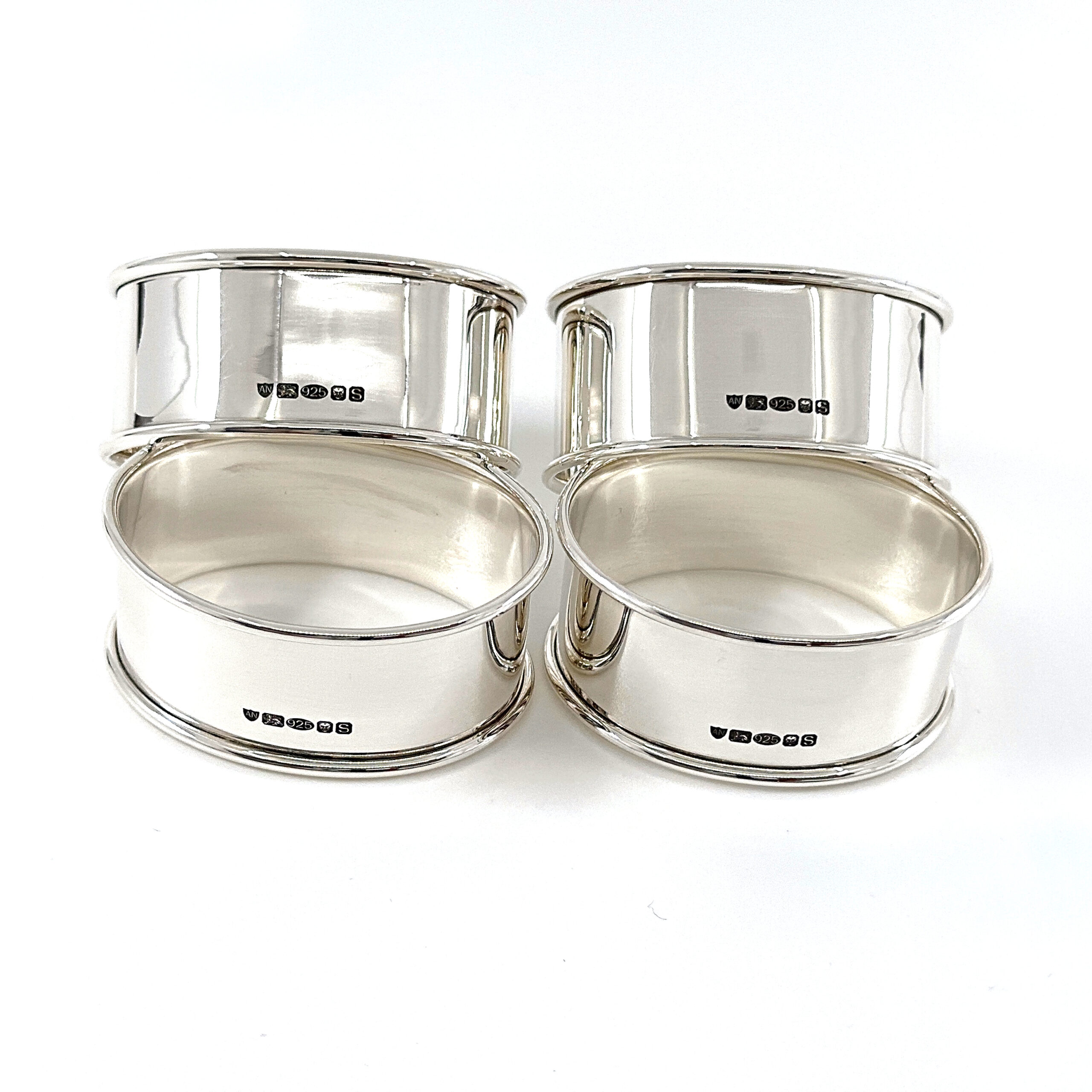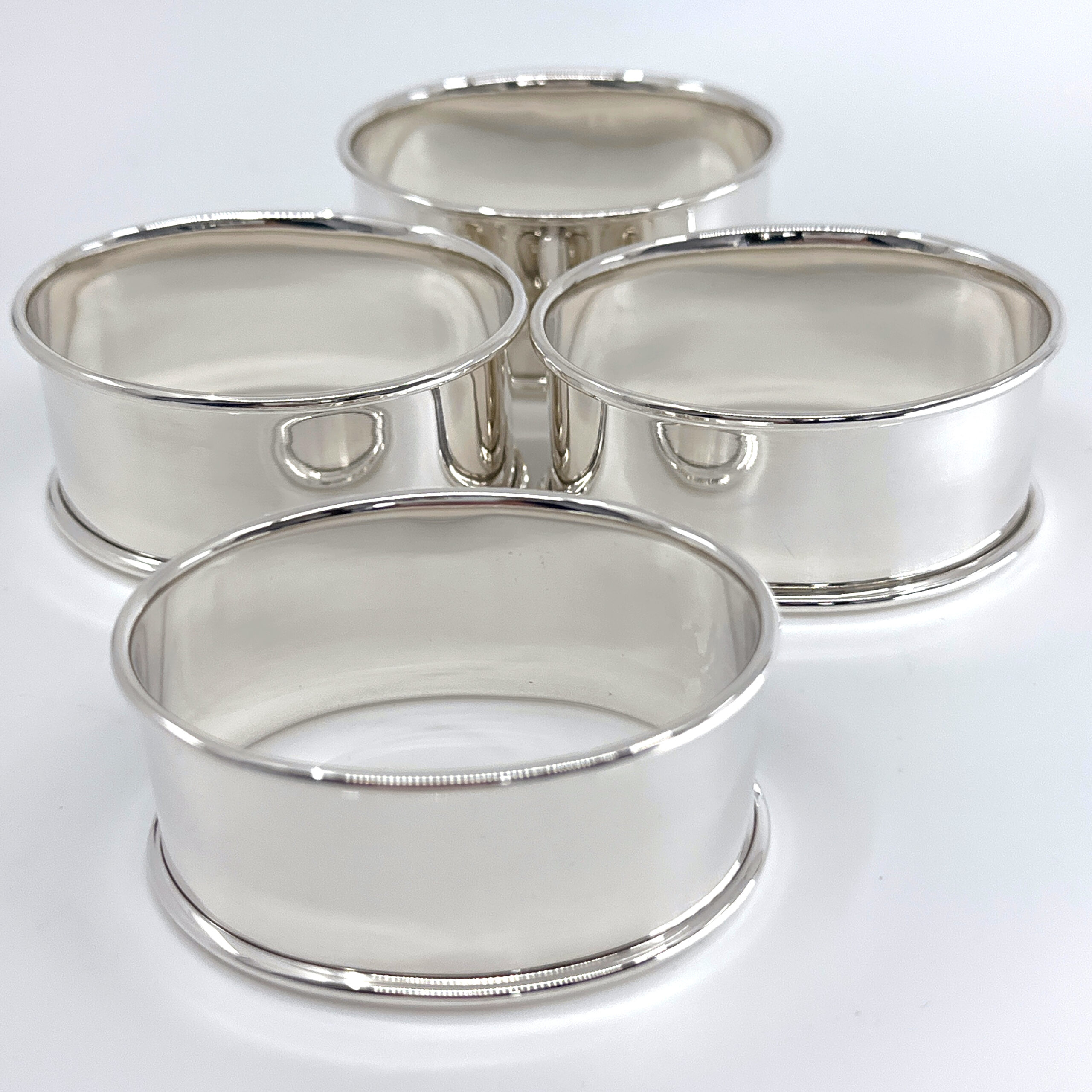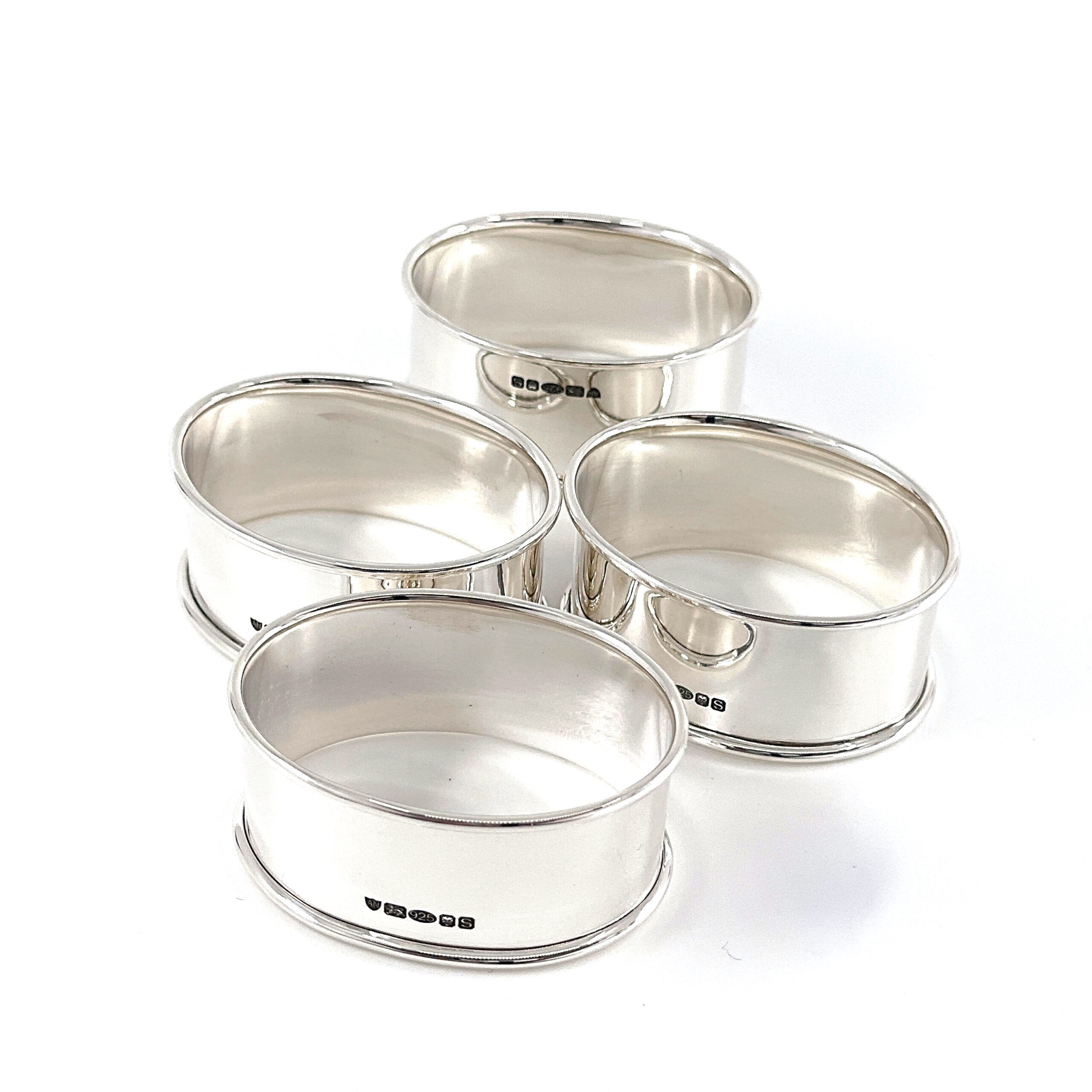 Set Of Four Plain Oval Serviette Rings, finished in 925 English Hallmarked Sterling Silver