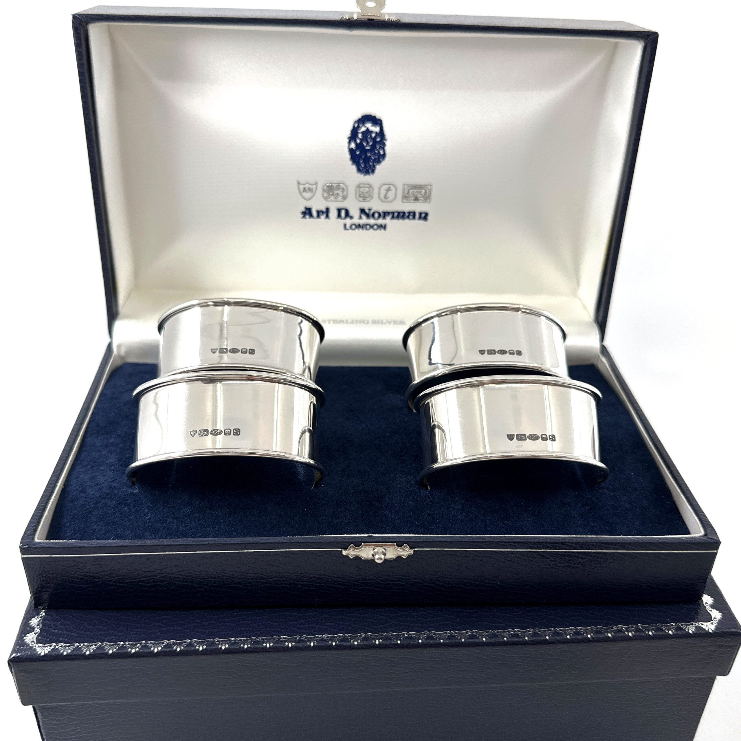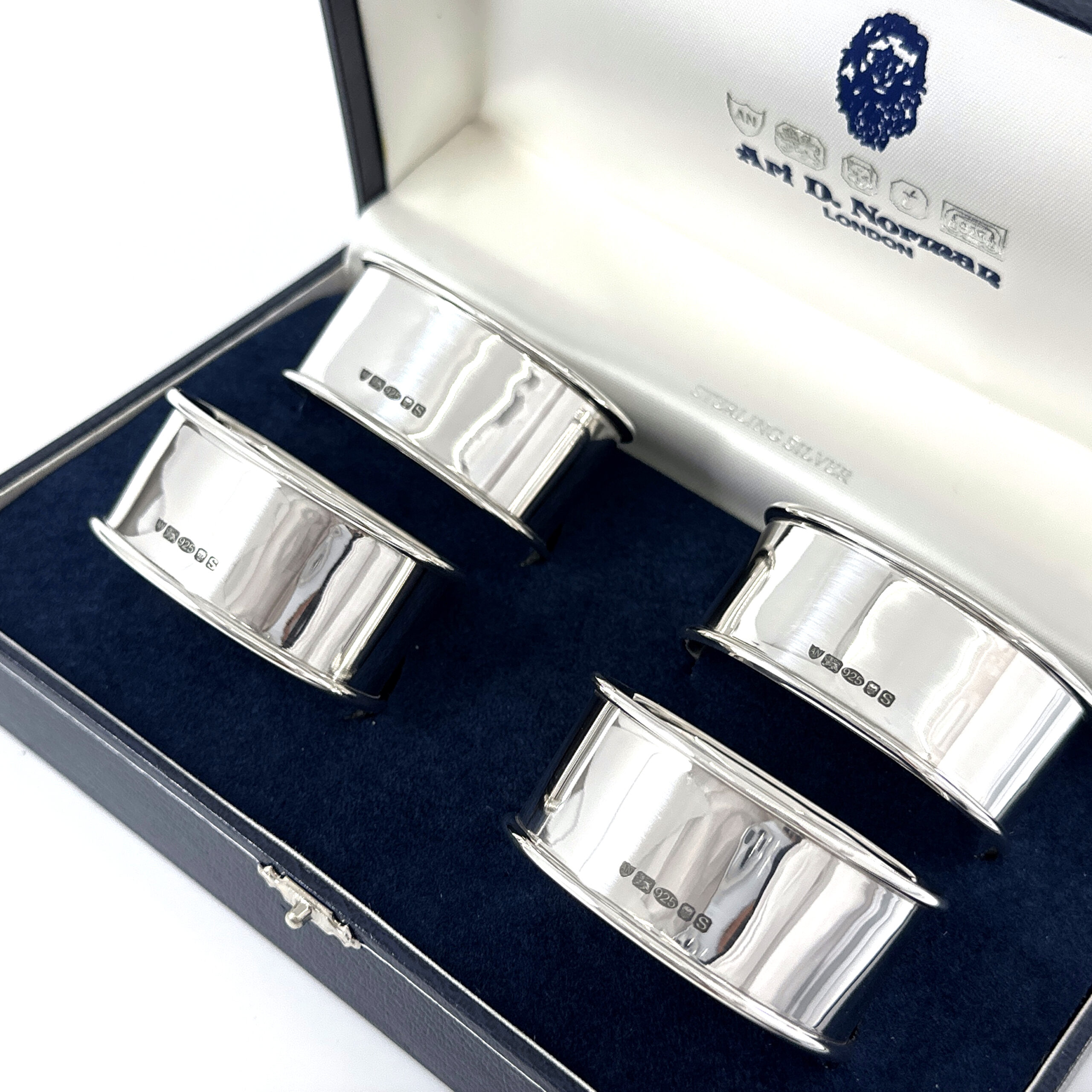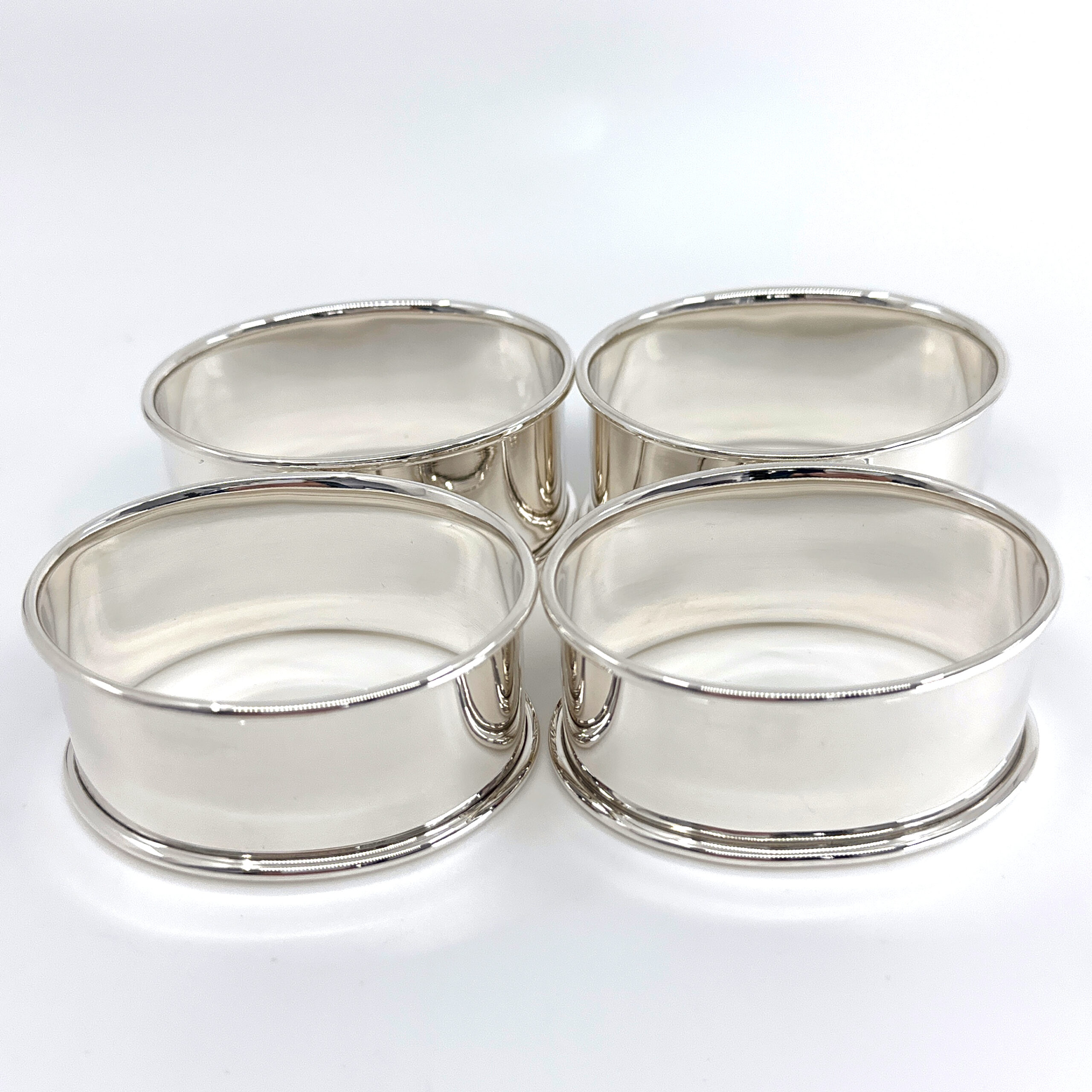 Set Of Four Plain Oval Serviette Rings, finished in 925 English Hallmarked Sterling Silver