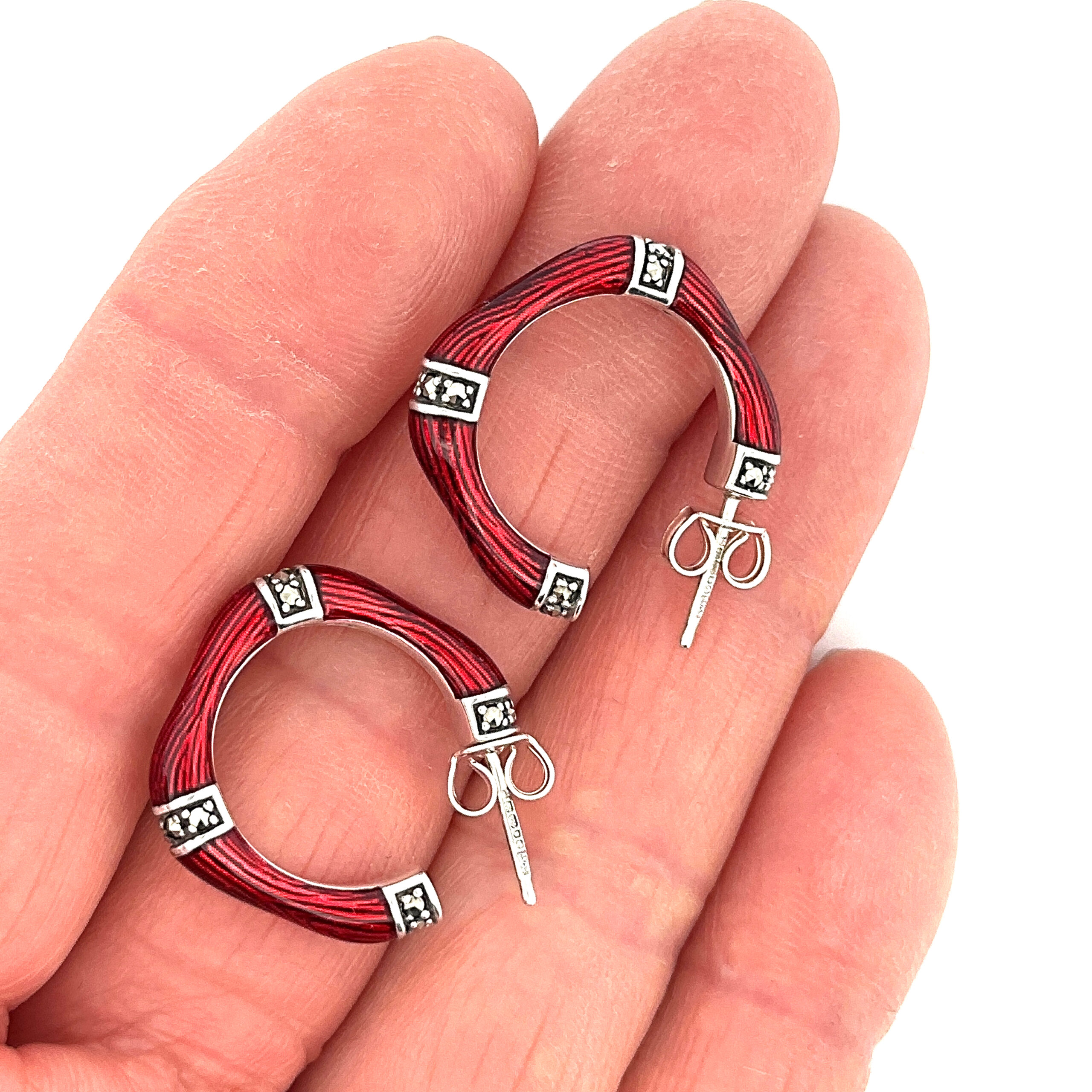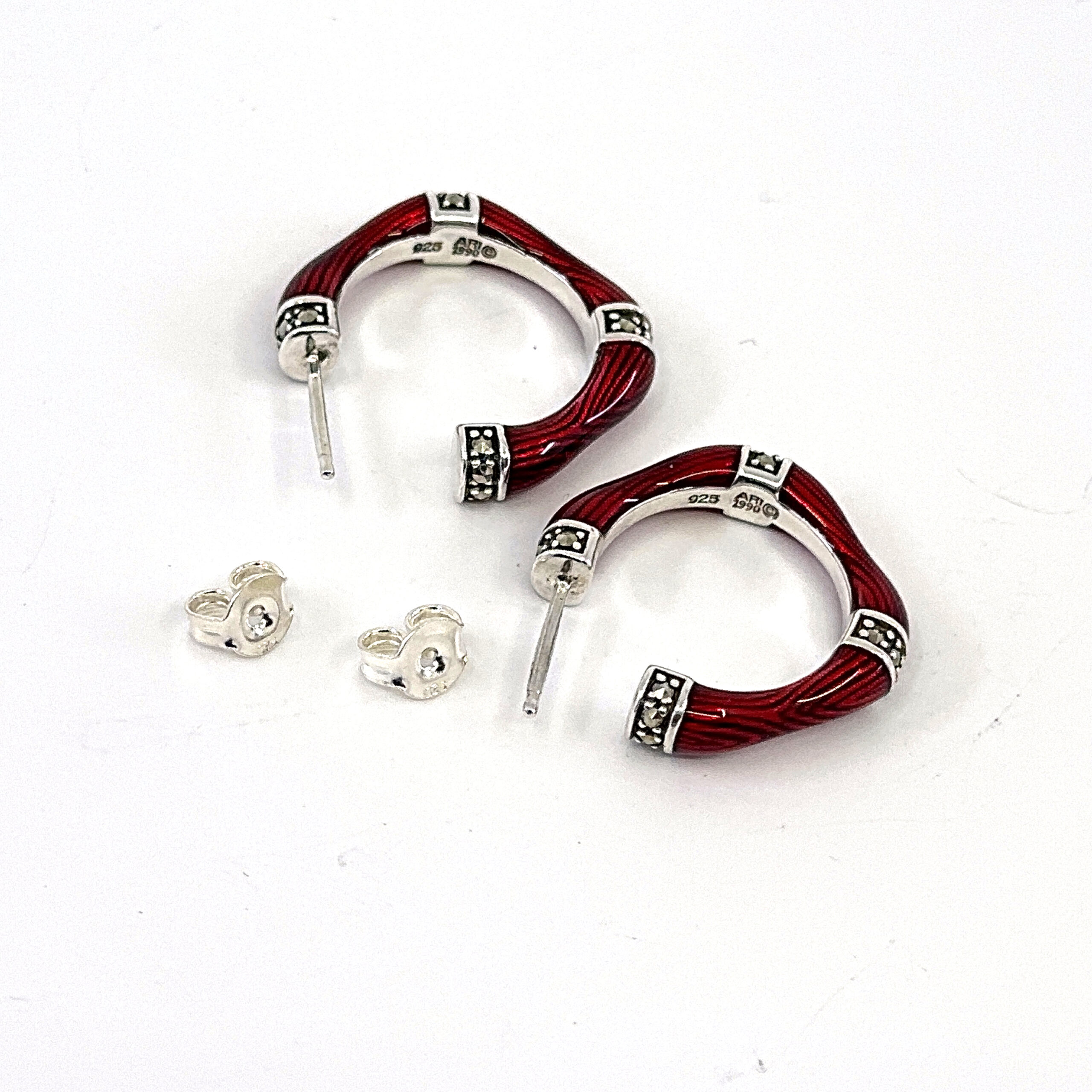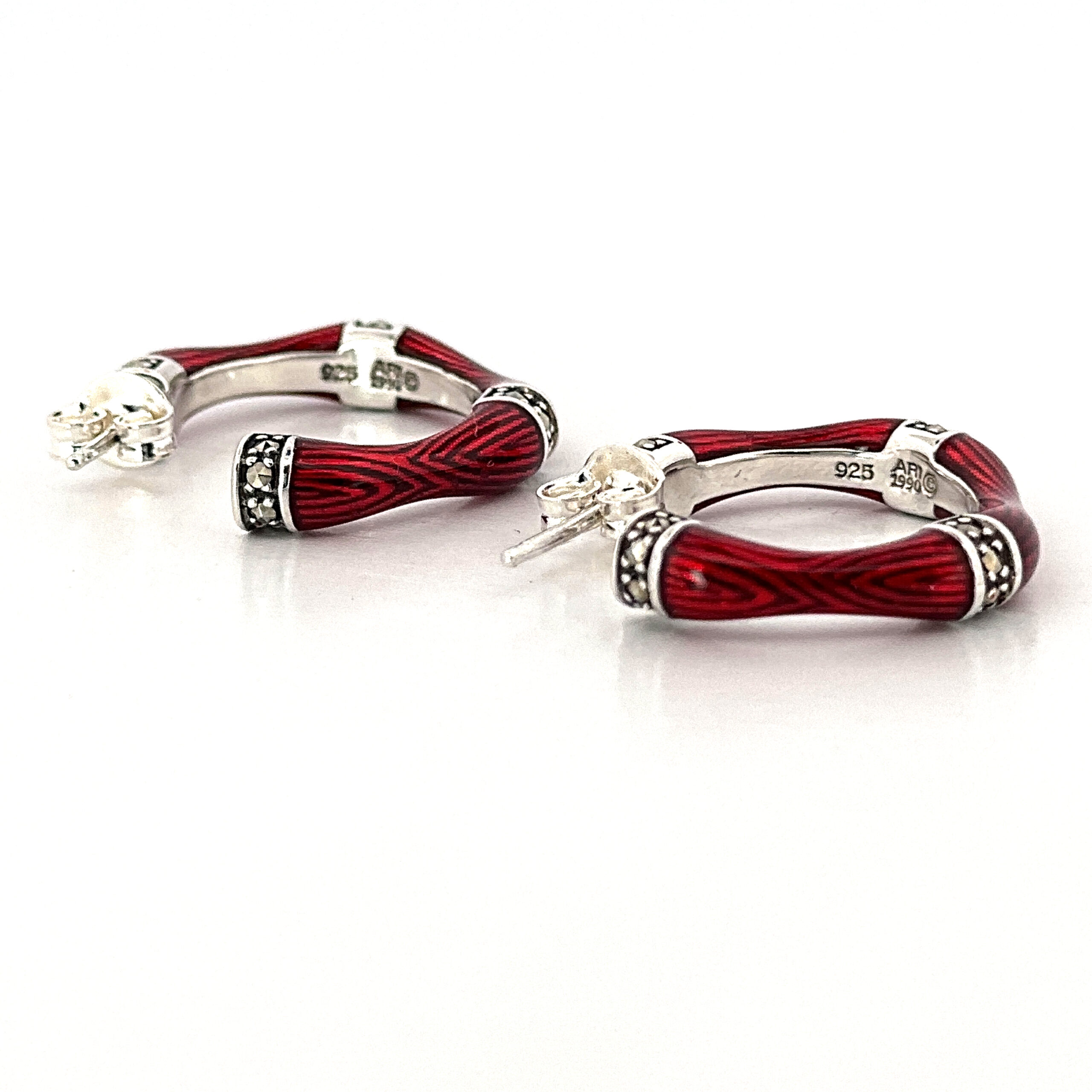 Each piece is handcrafted using traditional silversmithing techniques, with careful attention given to the shaping of the bamboo form and the precise application of the enamel and marcasite. The surface is hand finished and polished to achieve clarity, durability, and a refined construction.