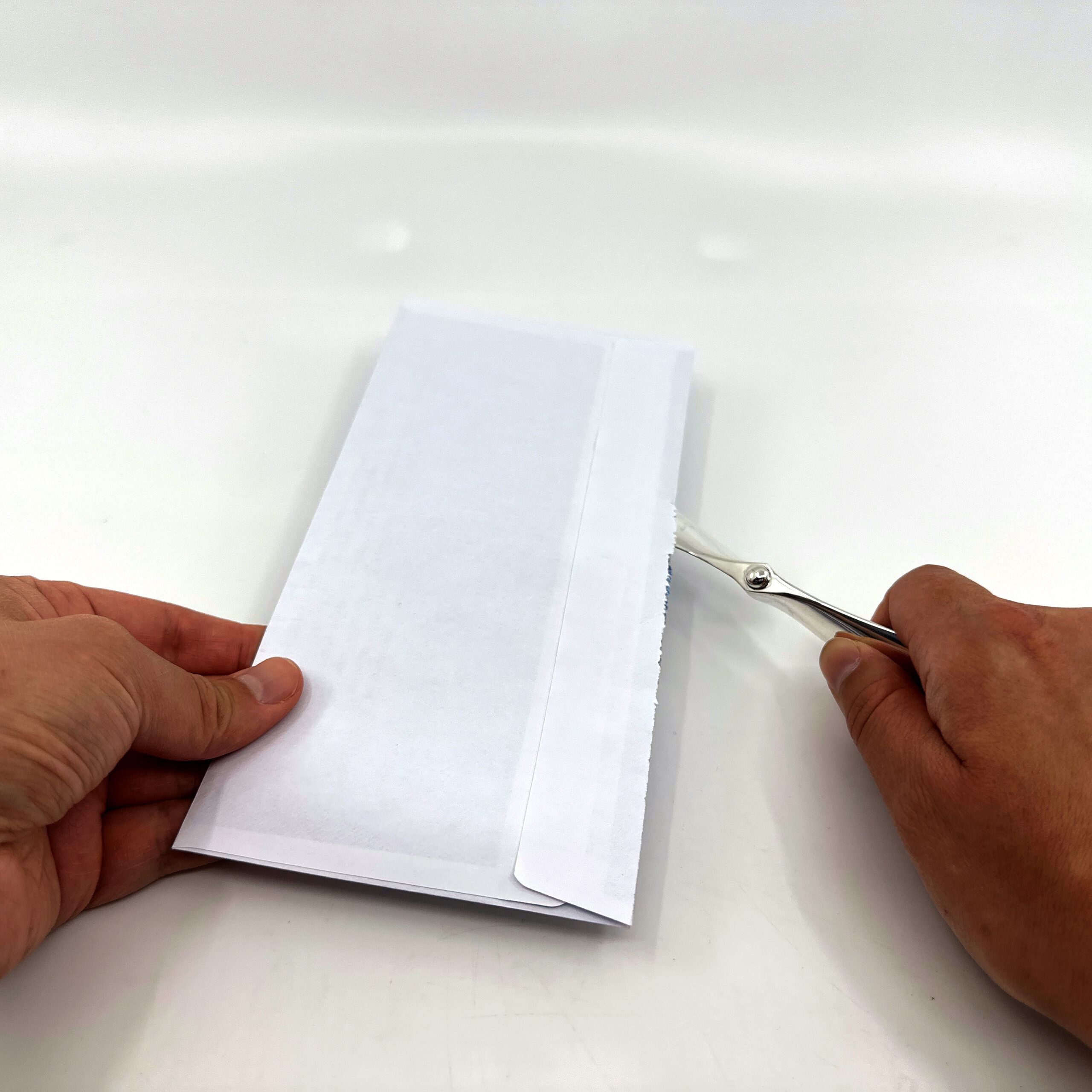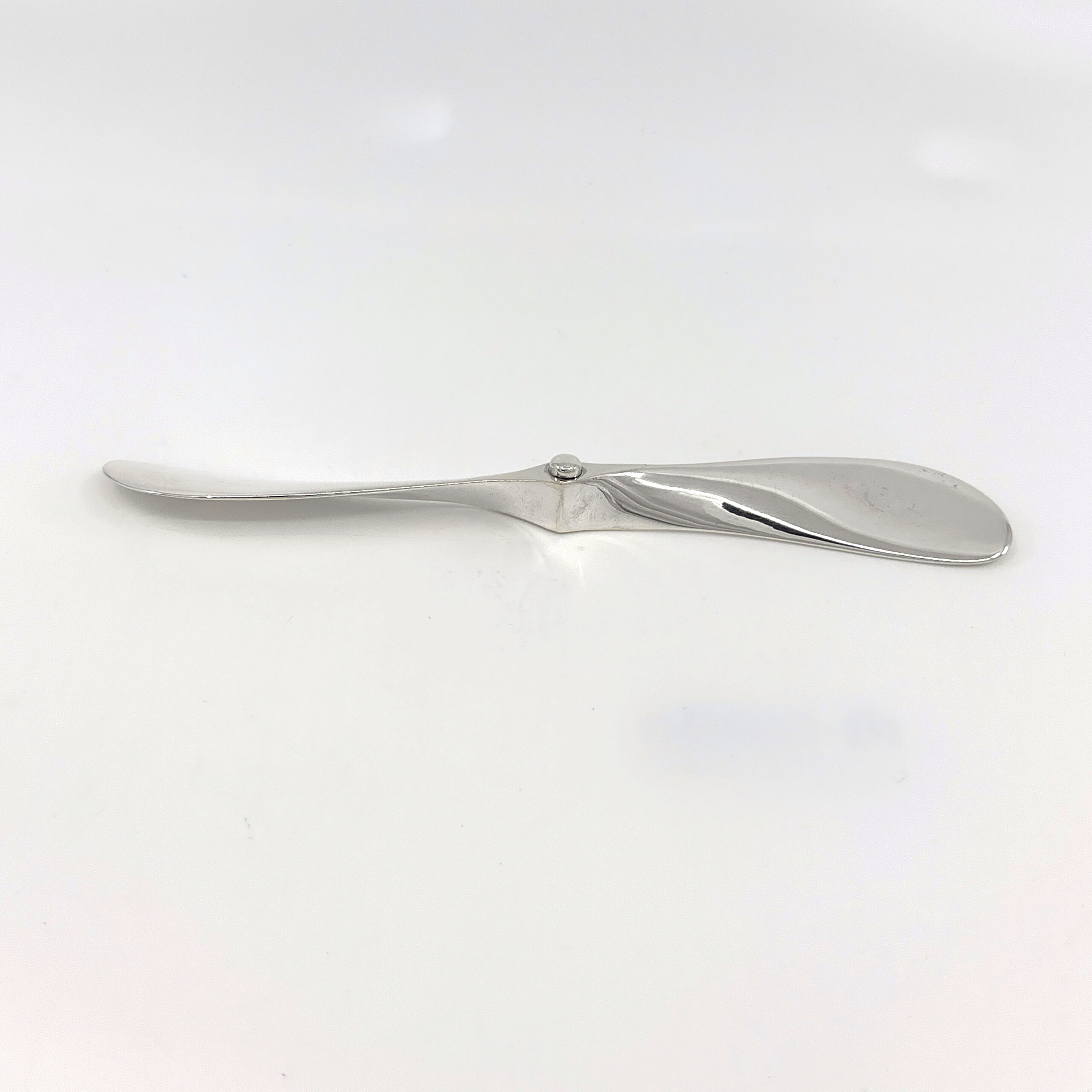 This paper knife letter opener is designed for the opening of correspondence and incorporates a balanced propeller form at the handle. The primary function of the piece is practical, with the propeller element engineered to rotate freely while maintaining stability during use.